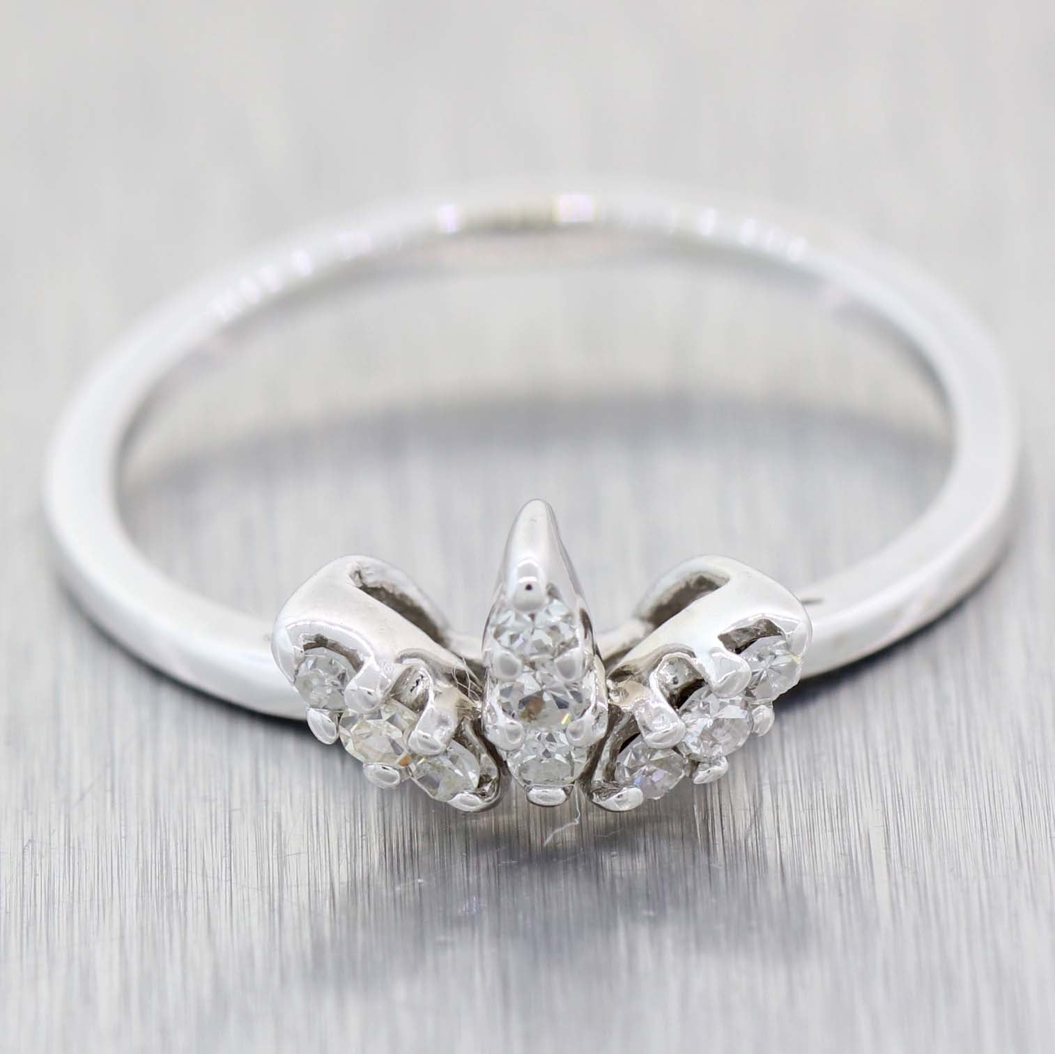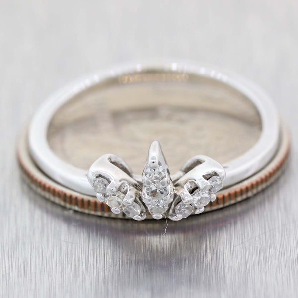 1930's Antique Art Deco 14K White Gold .20ctw Diamond Crown Tiara Band Ring C9