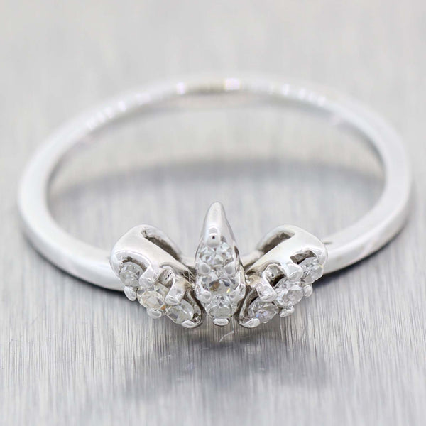 1930's Antique Art Deco 14K White Gold .20ctw Diamond Crown Tiara Band Ring