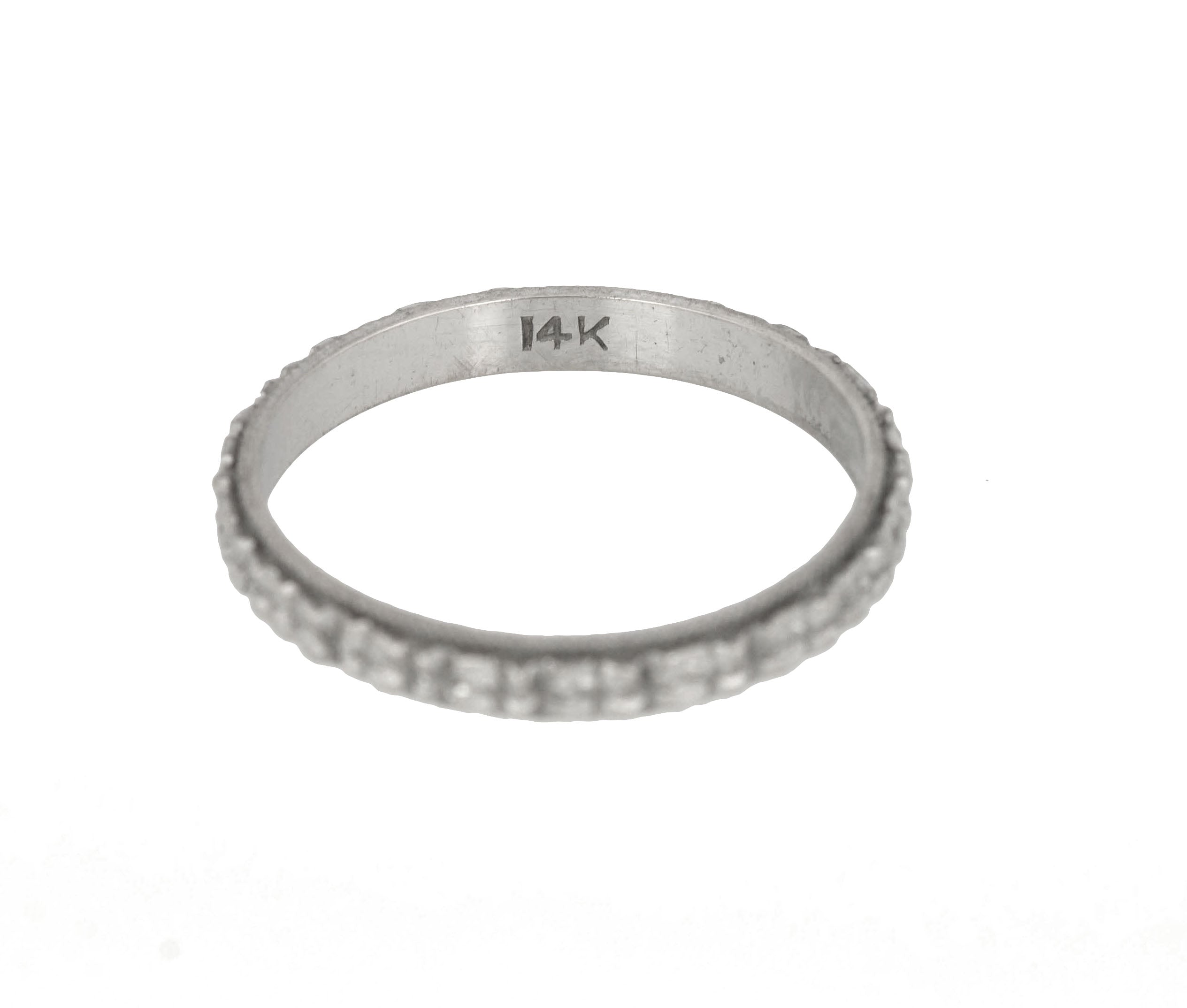 1930s Antique Art Deco 14k White Gold 3mm Diamond Cut Milgrain Wedding Band Ring