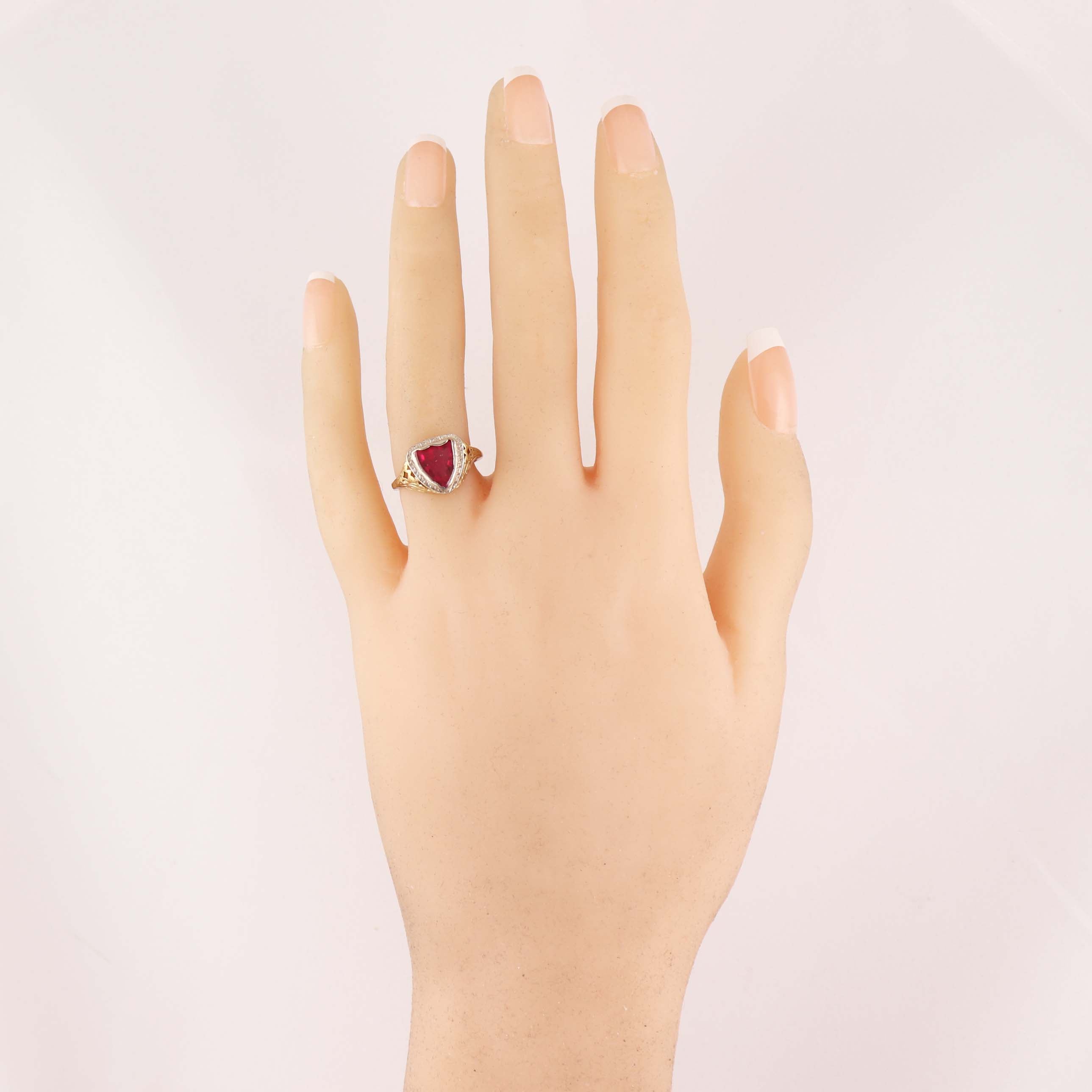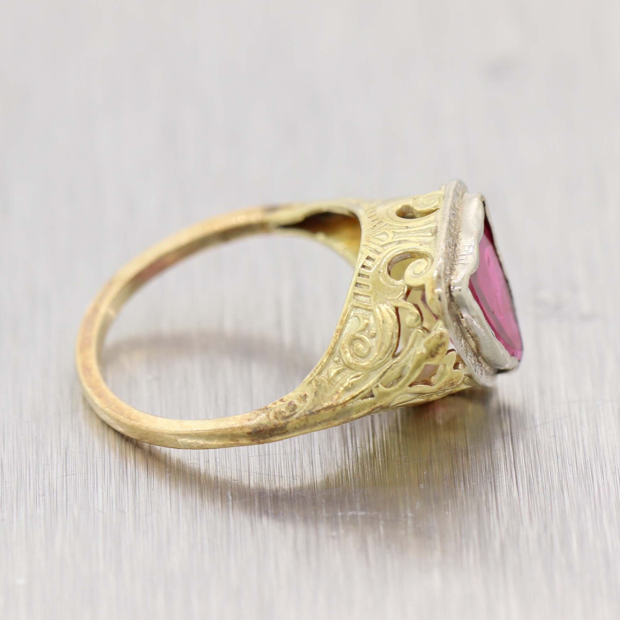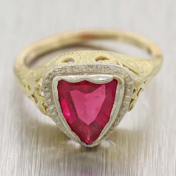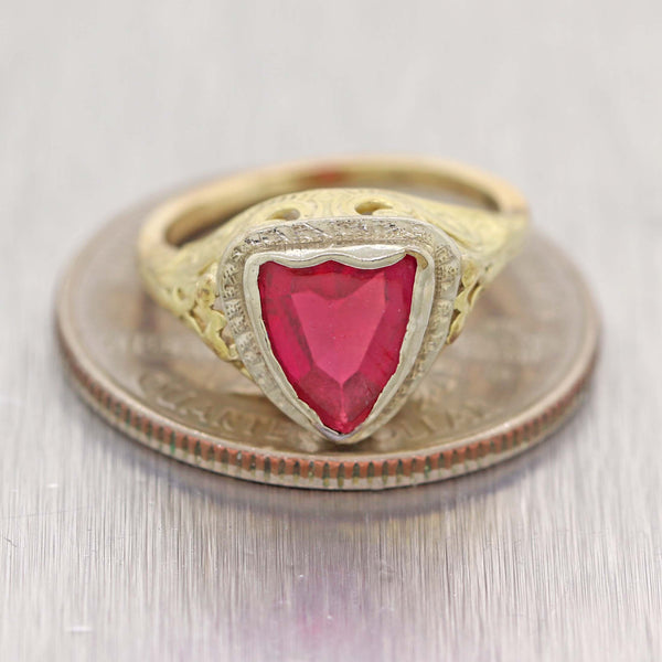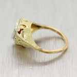 For your consideration, an authentic 1930's Antique Art Deco 14k Yellow Gold Red Glass Shield Ring. It will come in a lovely ring box for a perfect presentation and our unconditional 30 day money back return policy. H9