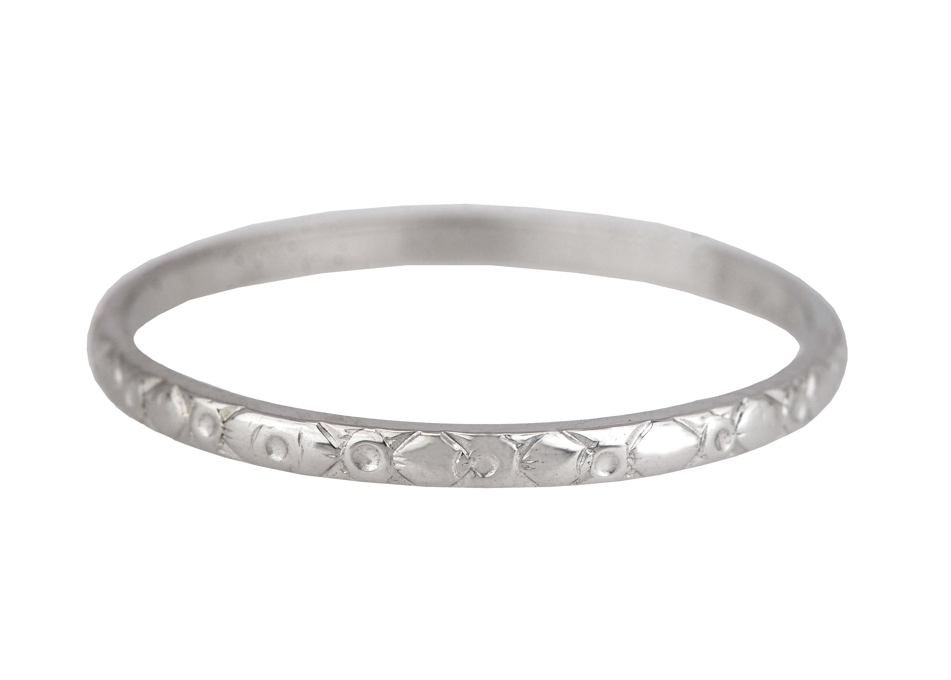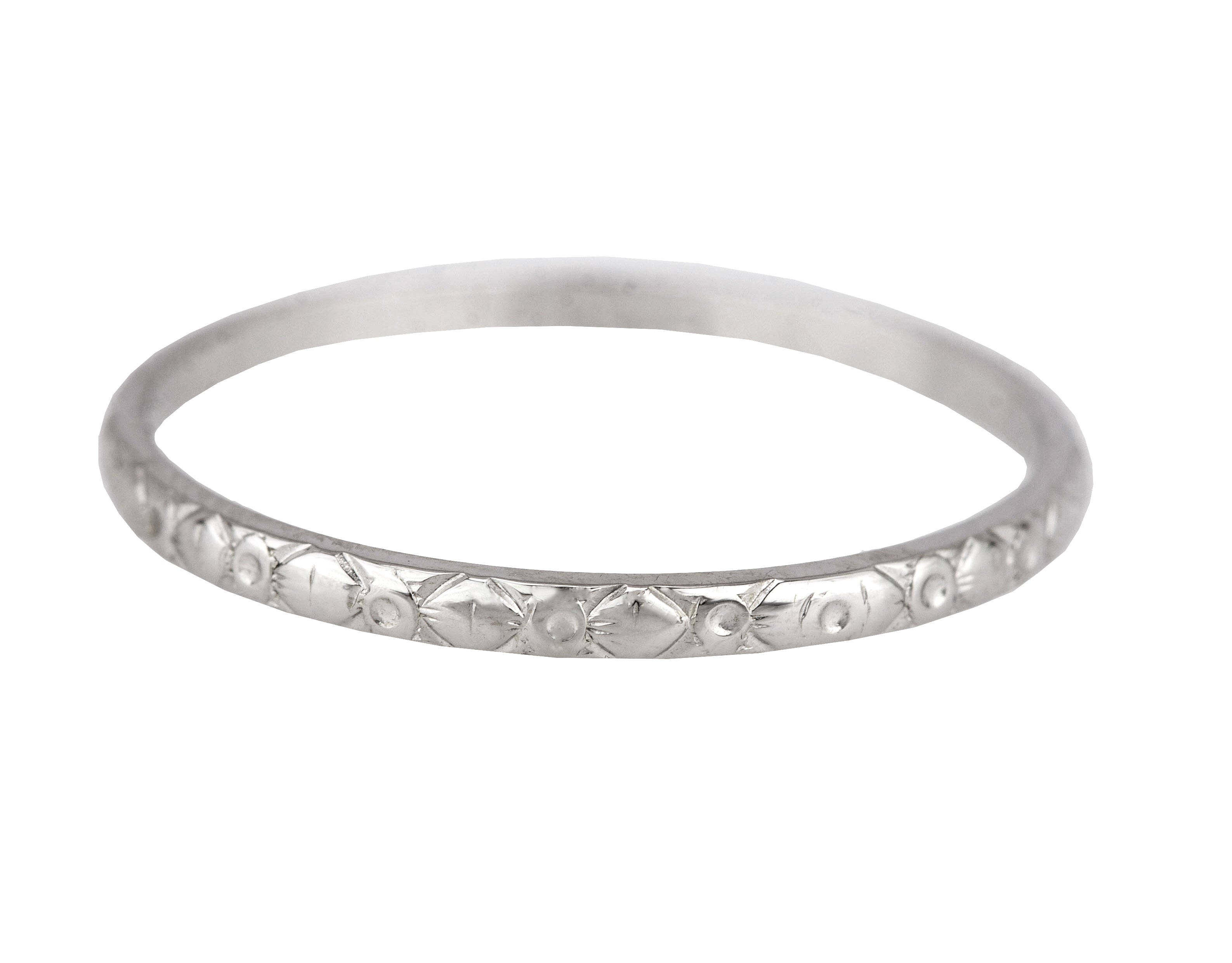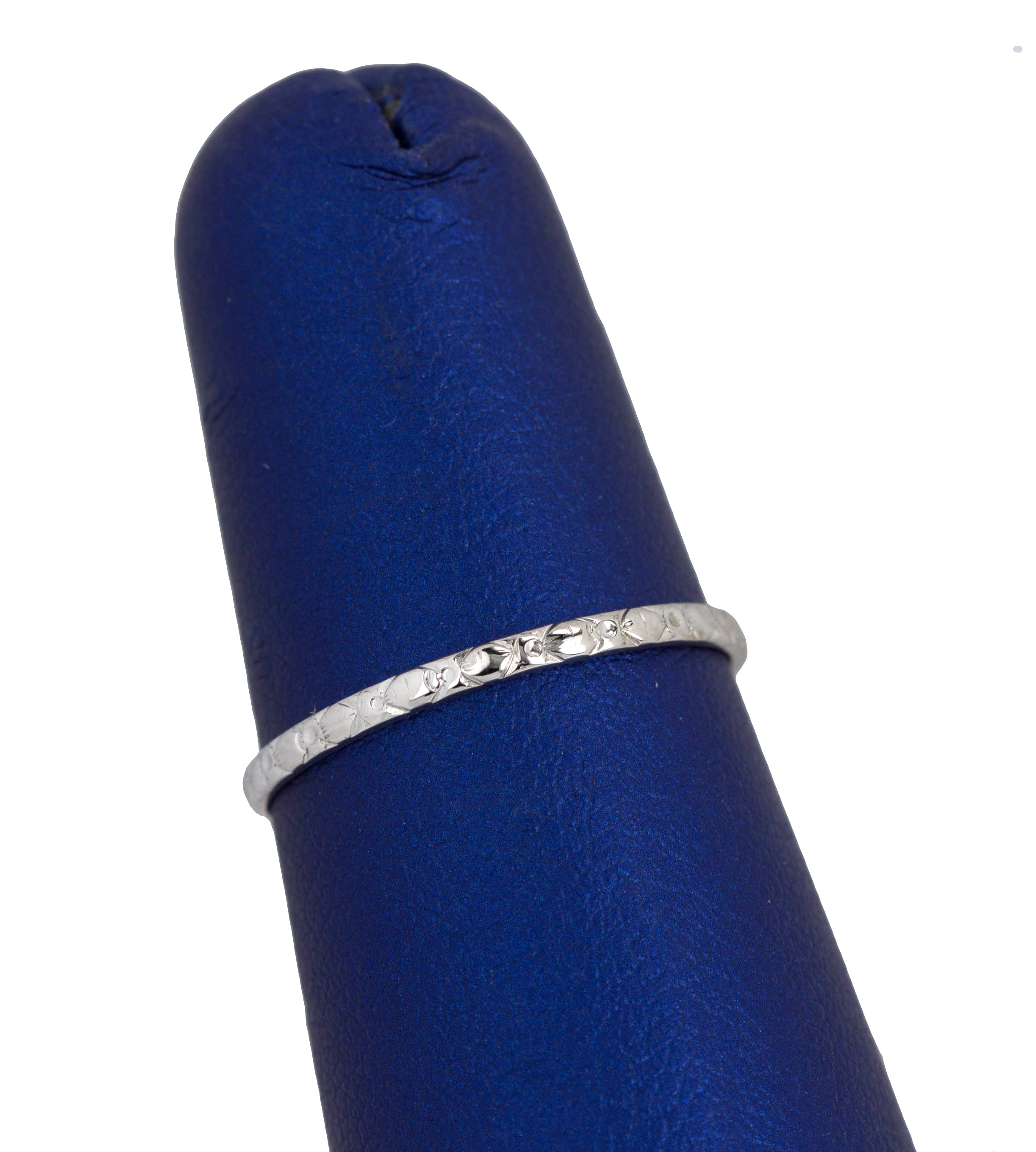1930's Antique Art Deco 18K White Gold Engraved Eternity Wedding Band Ring