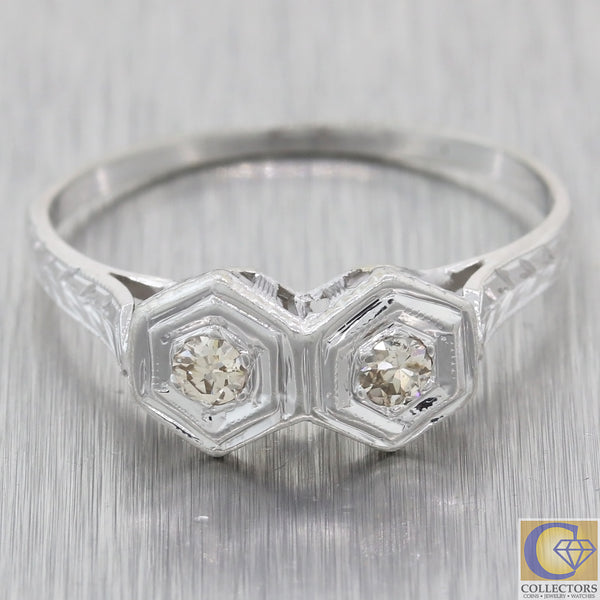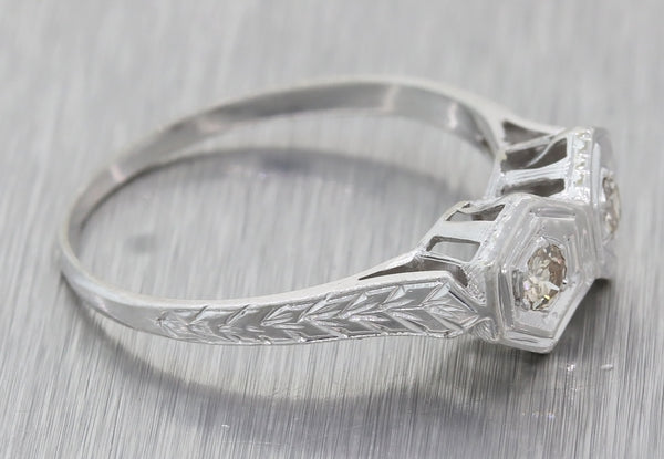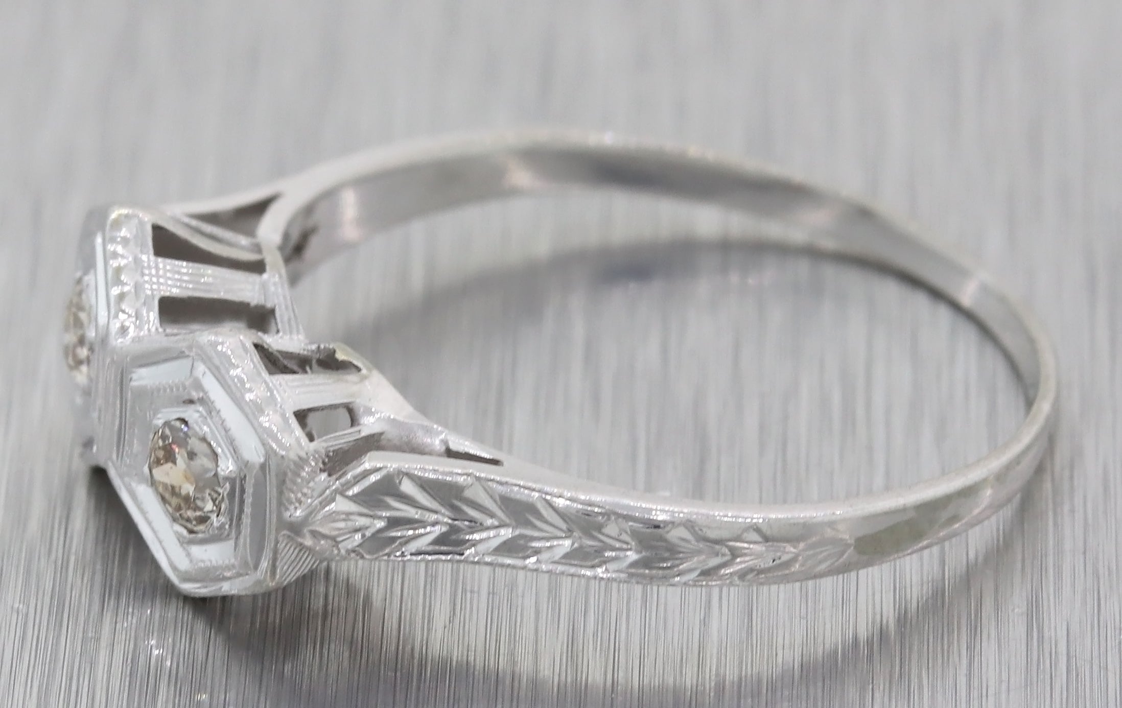 This is a beautiful 1930s Antique Art Deco Estate 14k White .23ctw Diamond Saddle Ring M8. It will come in a lovely ring box for a perfect presentation and our unconditional 30 day money back return policy.