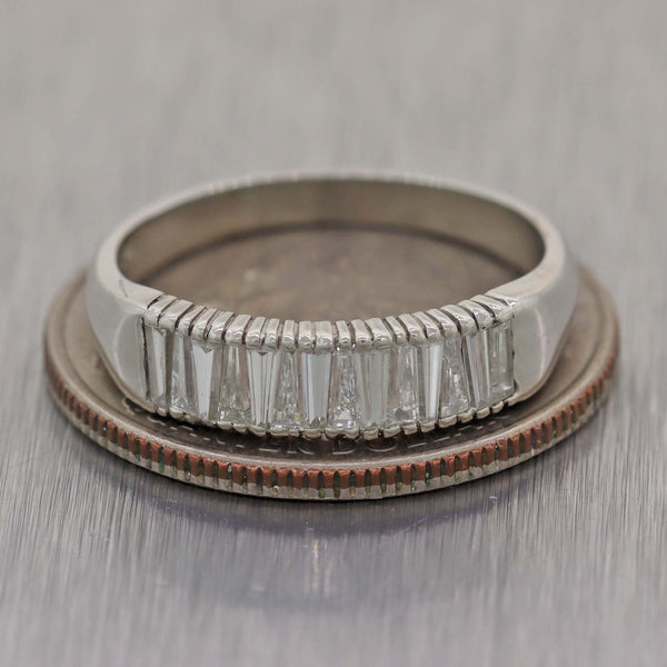 For your consideration, an authentic 1930's Antique Art Deco Platinum Tapered Baguette 1ctw Diamond Wedding Band Ring. This piece will come in a lovely ring box for a perfect presentation and our unconditional 30 day money back return policy. H9