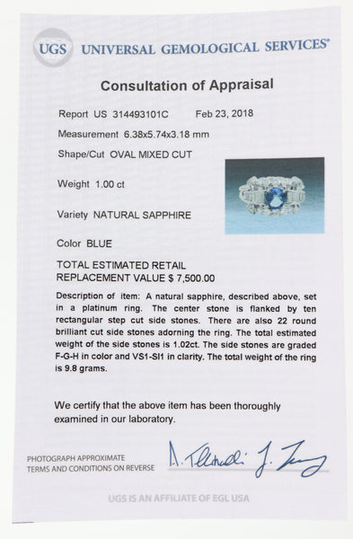Center Stone(s): Ceylon Sapphire - Oval Mixed Cut - Blue - 1.00ct (approx)