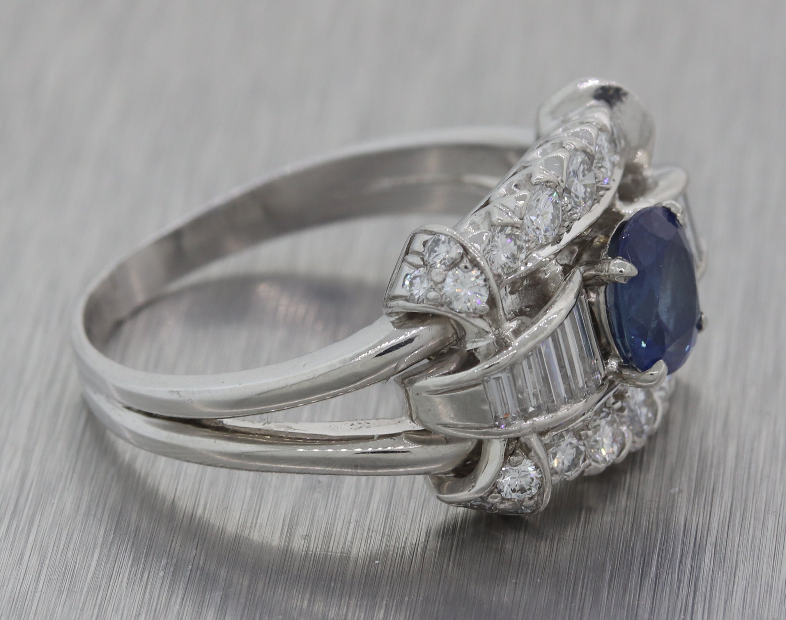 1940s Platinum 2.02ct Unheated Ceylon Sapphire Diamond Engagement Ring EGL M8 T1