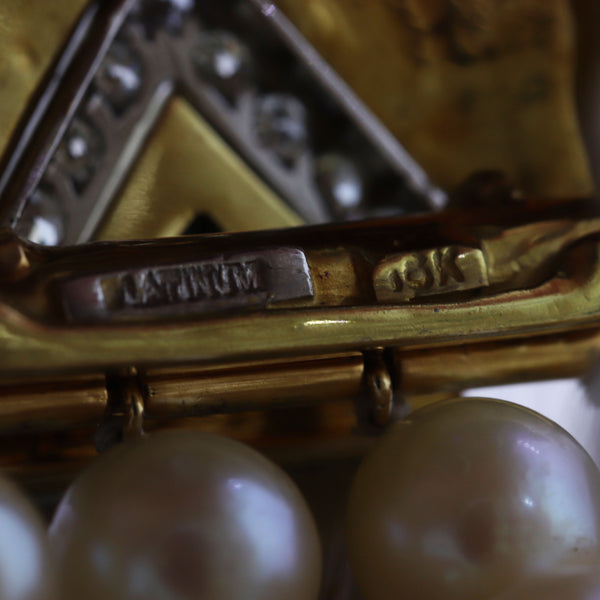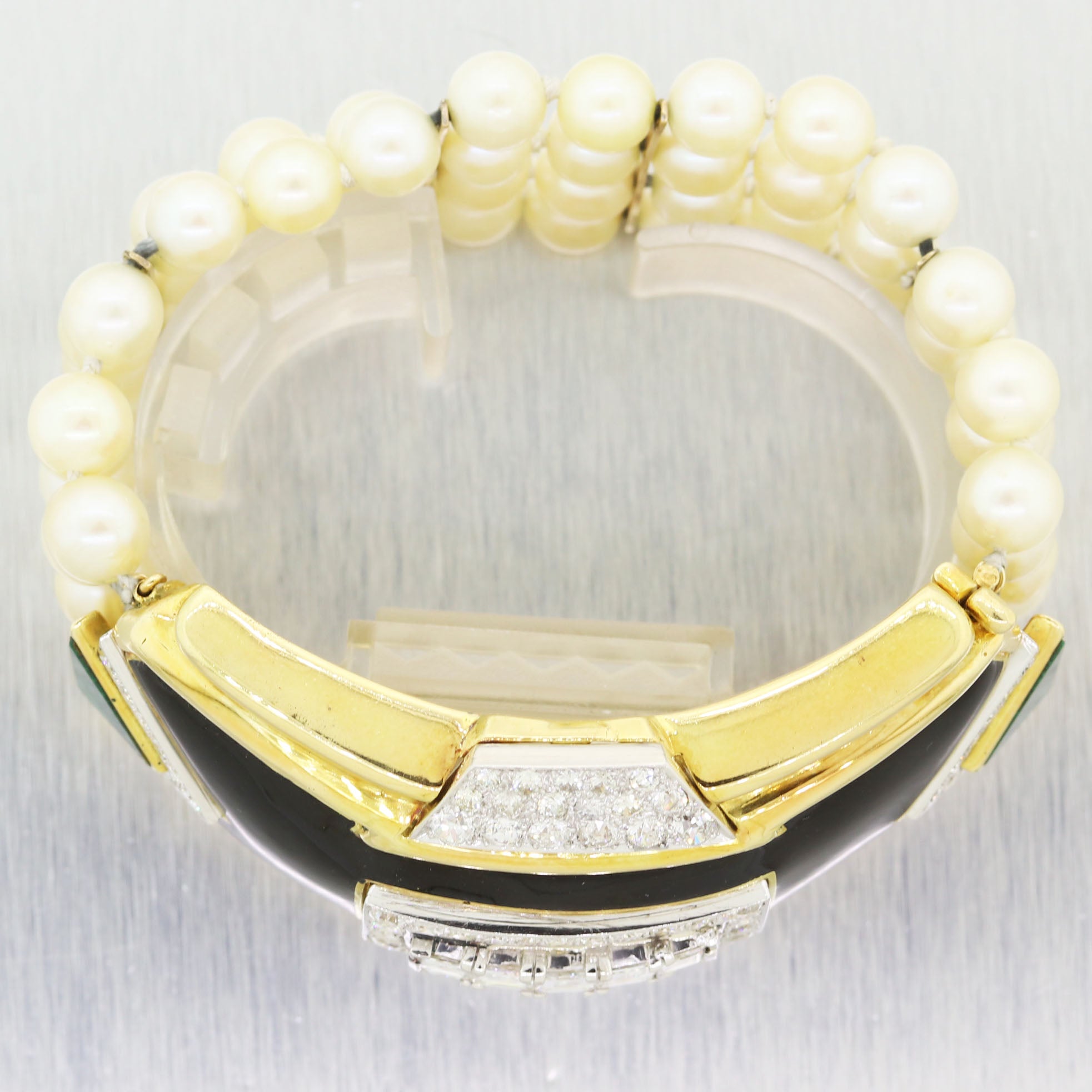 For your consideration, an authentic 1980's Antique Art Deco Platinum & 18k Yellow Gold 10ctw Diamond Pearl Bracelet. It will come professionally packaged in a Collectors Coins & Jewelry gift presentation box. J9