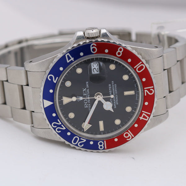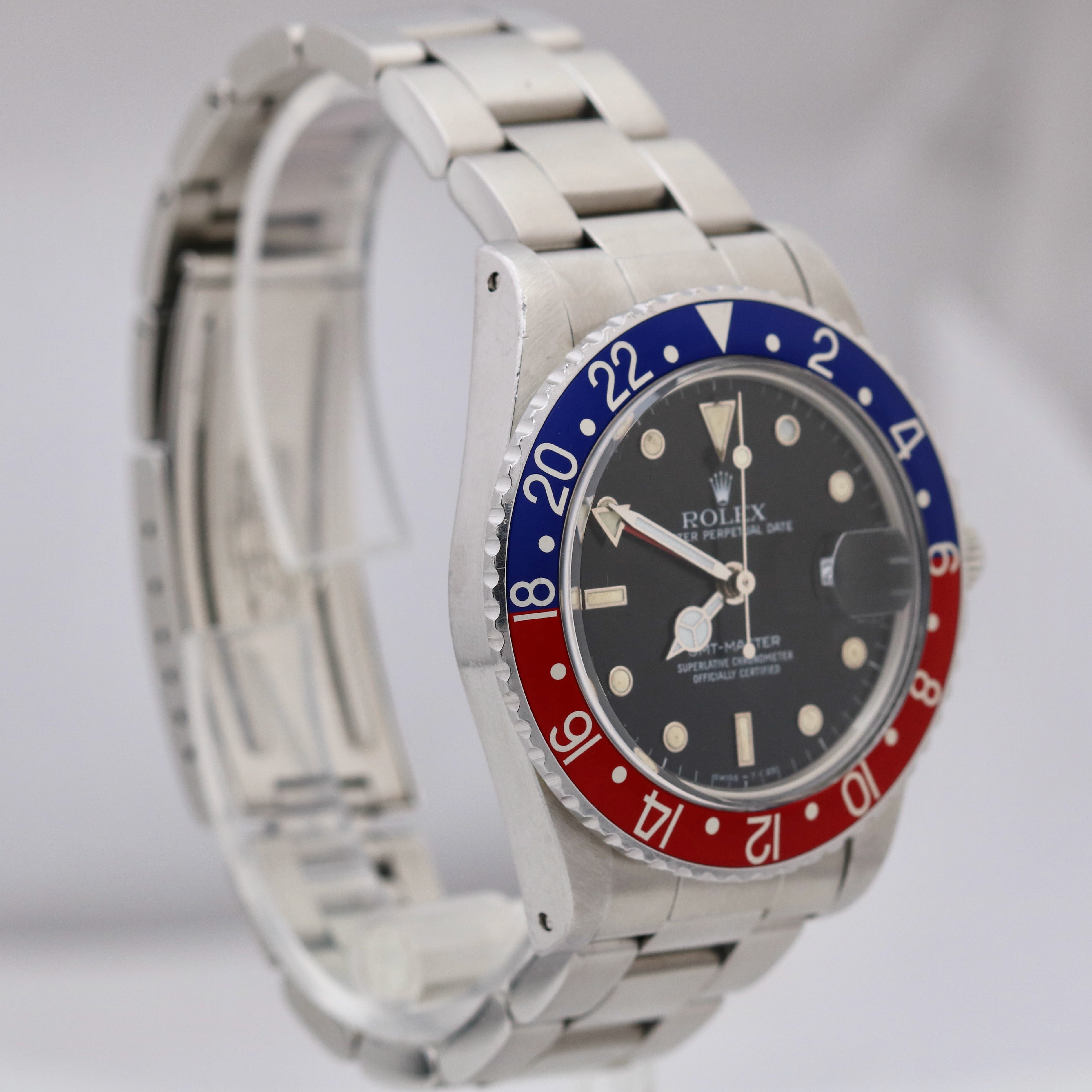 1984 VINTAGE Rolex GMT-Master GLOSSY PATINA Blue Red PEPSI Steel Date 16750