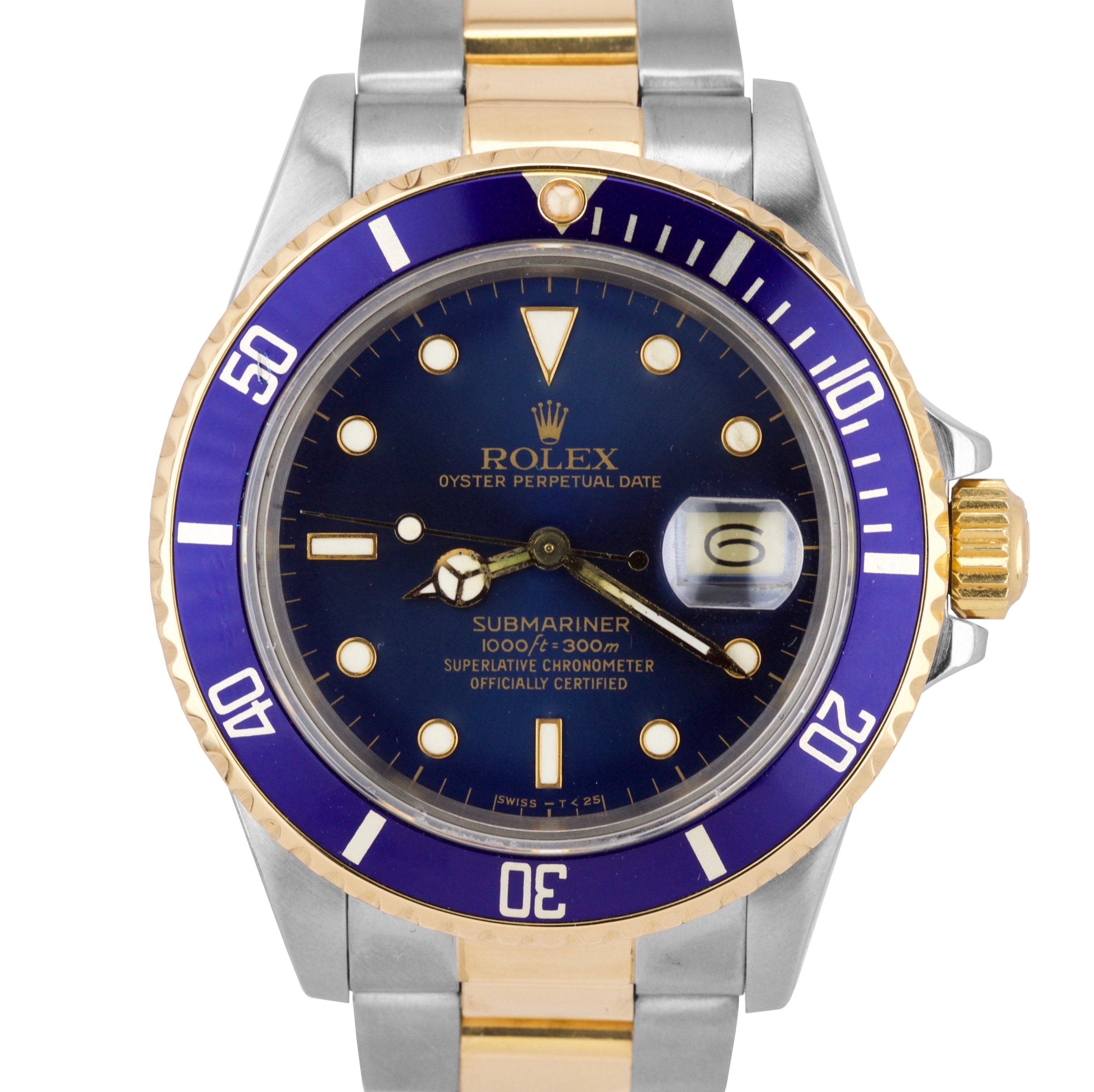 1987 Rolex Submariner Date 16803 Two-Tone Gold Stainless Steel Blue 40mm Watch