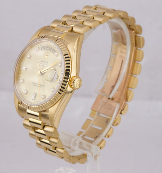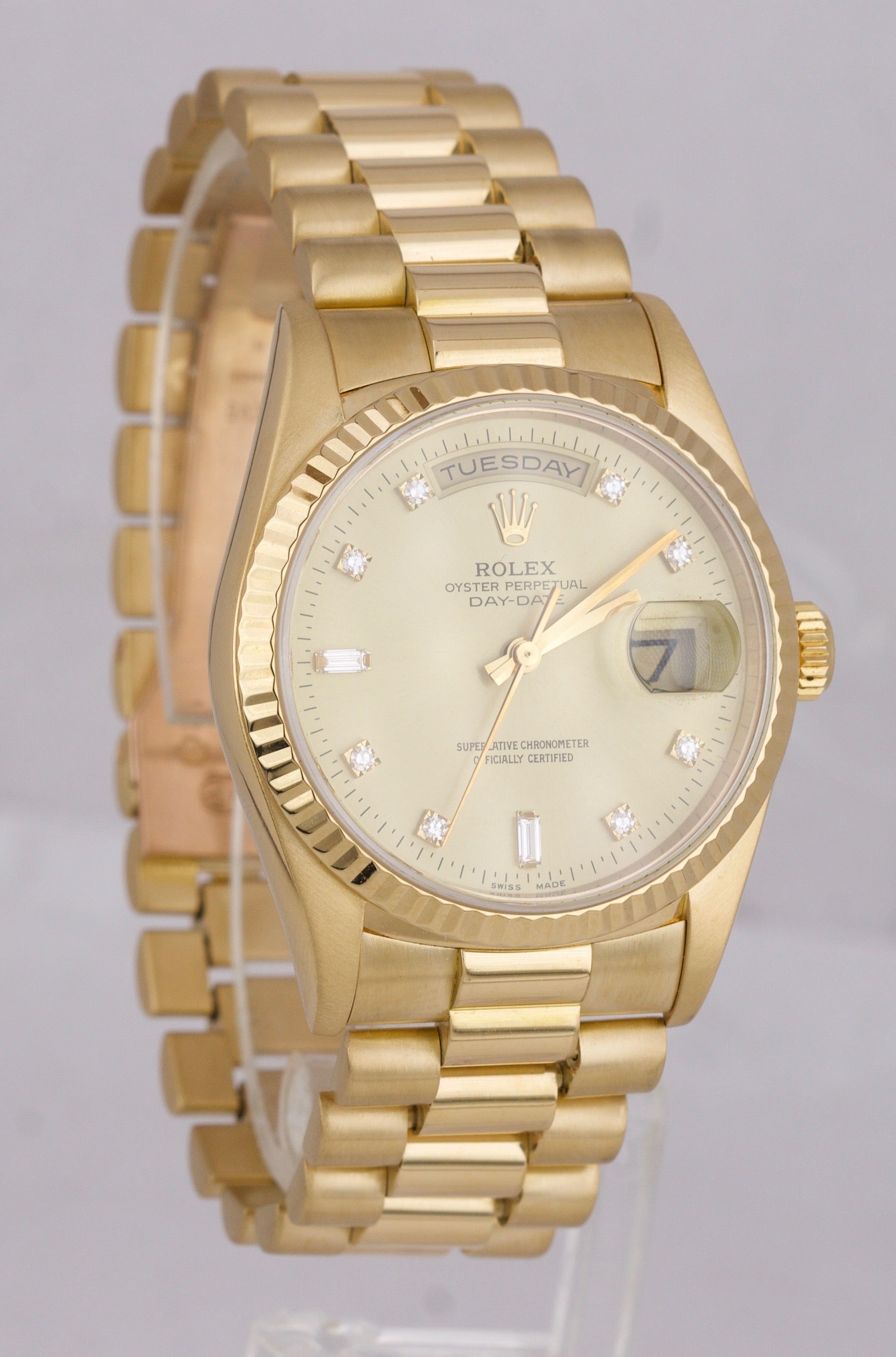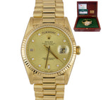 1999 FULL SET Rolex Diamond Day-Date President 36mm 18K Yellow Gold Watch 18238