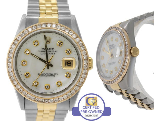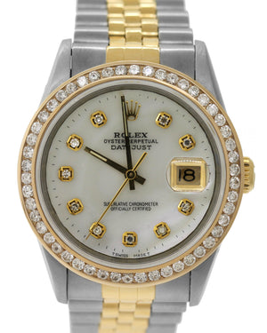 1993 Rolex DateJust 36mm MOP Diamond 16233 Two-Tone Gold Steel Jubilee Watch