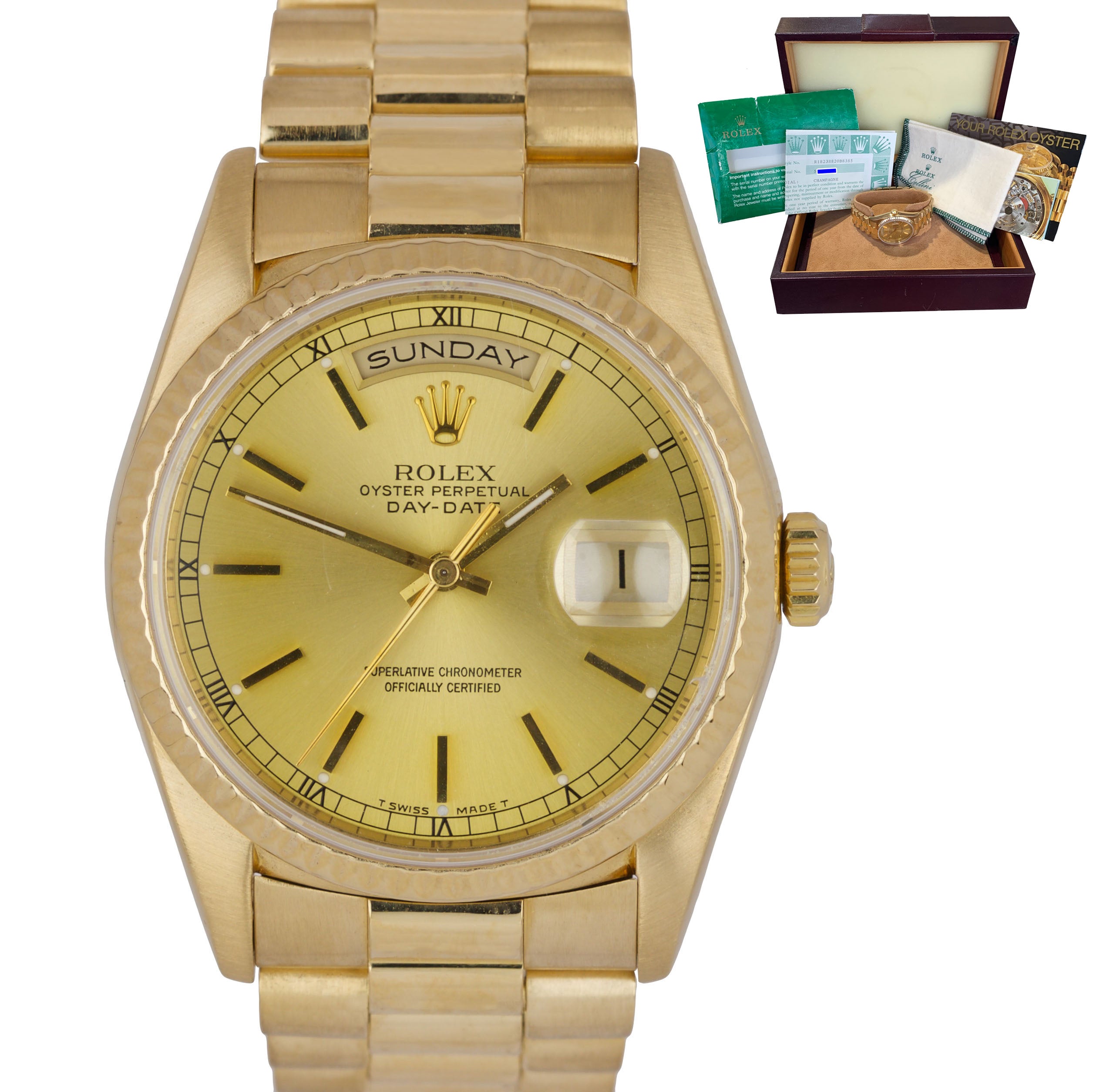 1993 Rolex Day-Date President 36mm Double Quickset 18K Yellow Gold Watch 18238