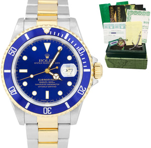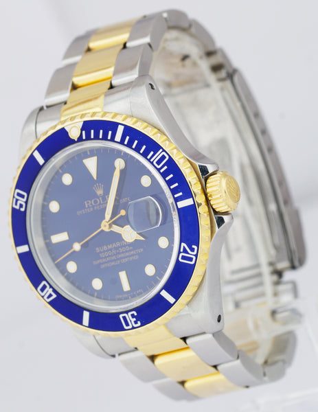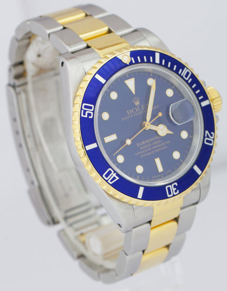 1994 Rolex Submariner Date Two-Tone Steel Gold Blue 40mm Watch 16613 LB FULL SET