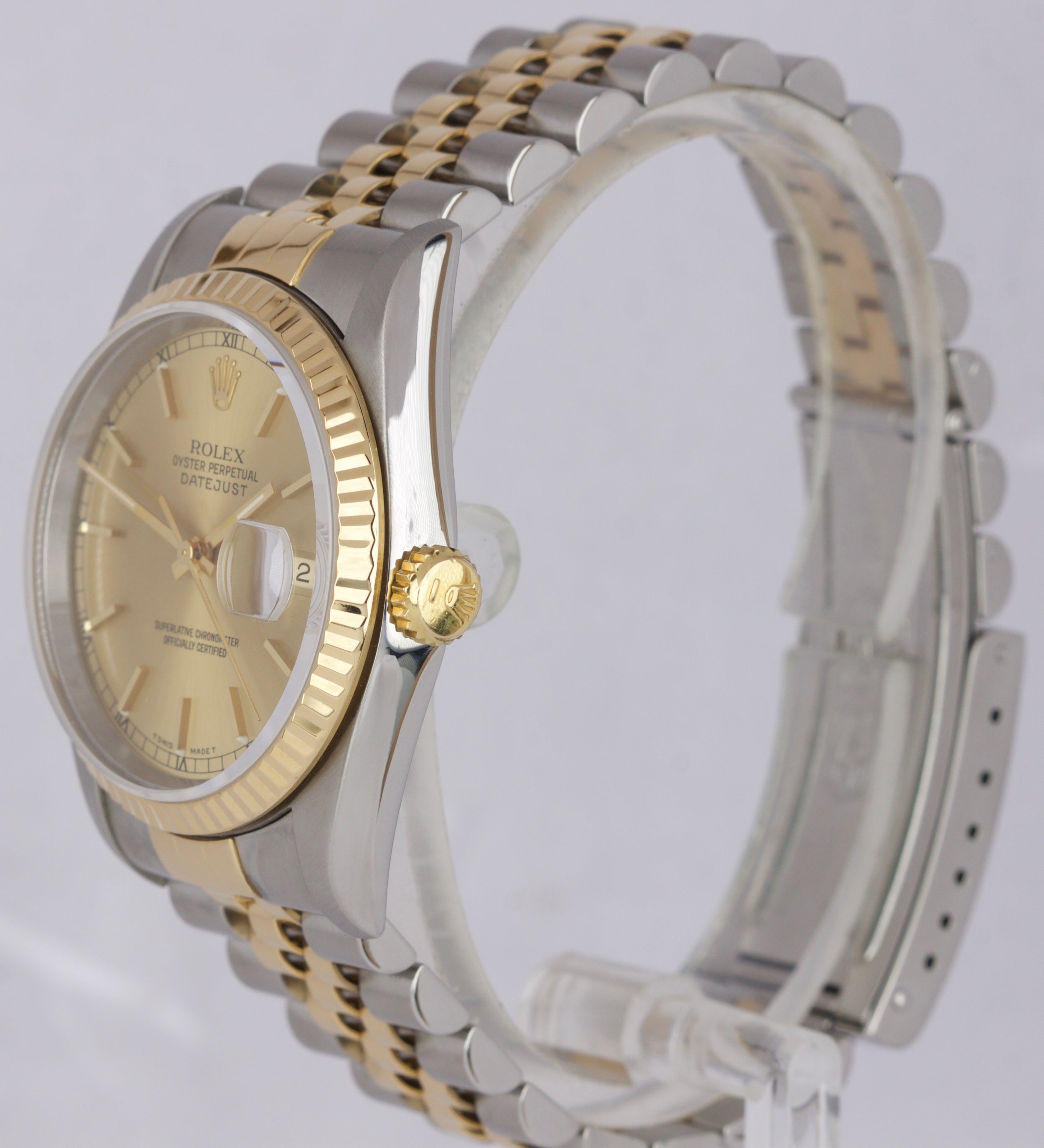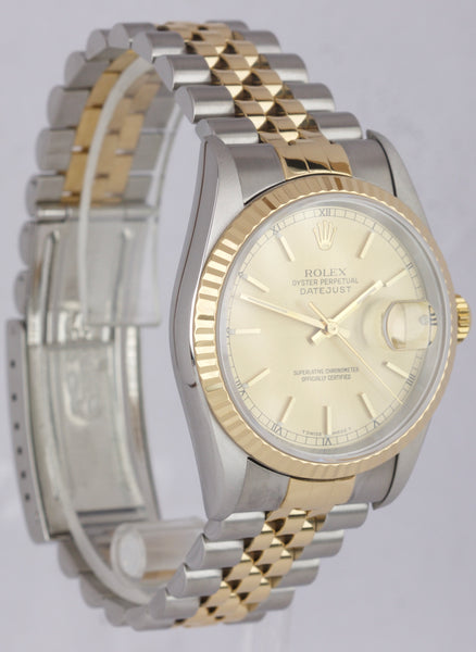 1996 Rolex DateJust 36mm Two-Tone Champagne Steel Gold Jubilee Watch 16233