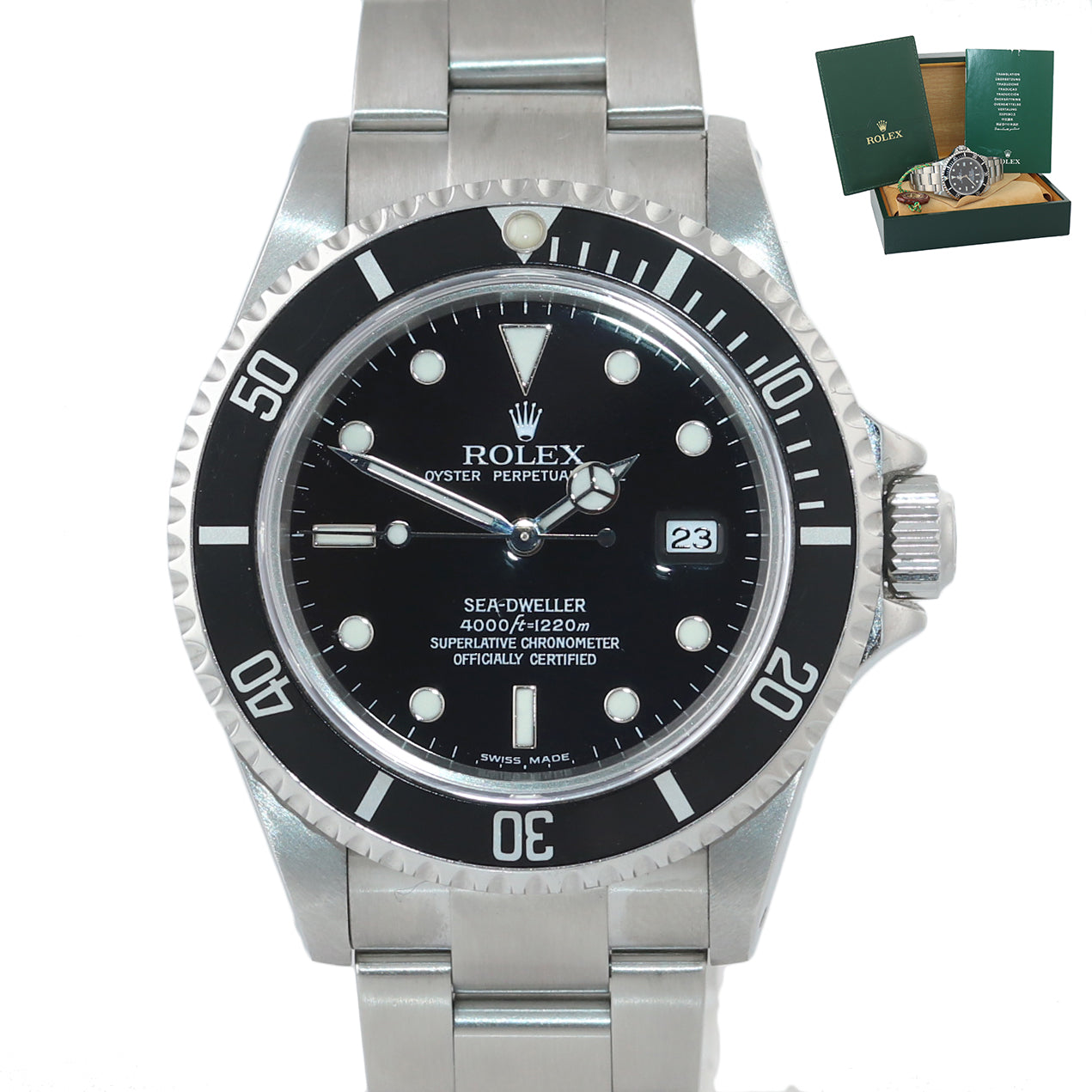 MINT Rolex Sea-Dweller Steel Date 16600 40mm Date Black Diver Watch Box