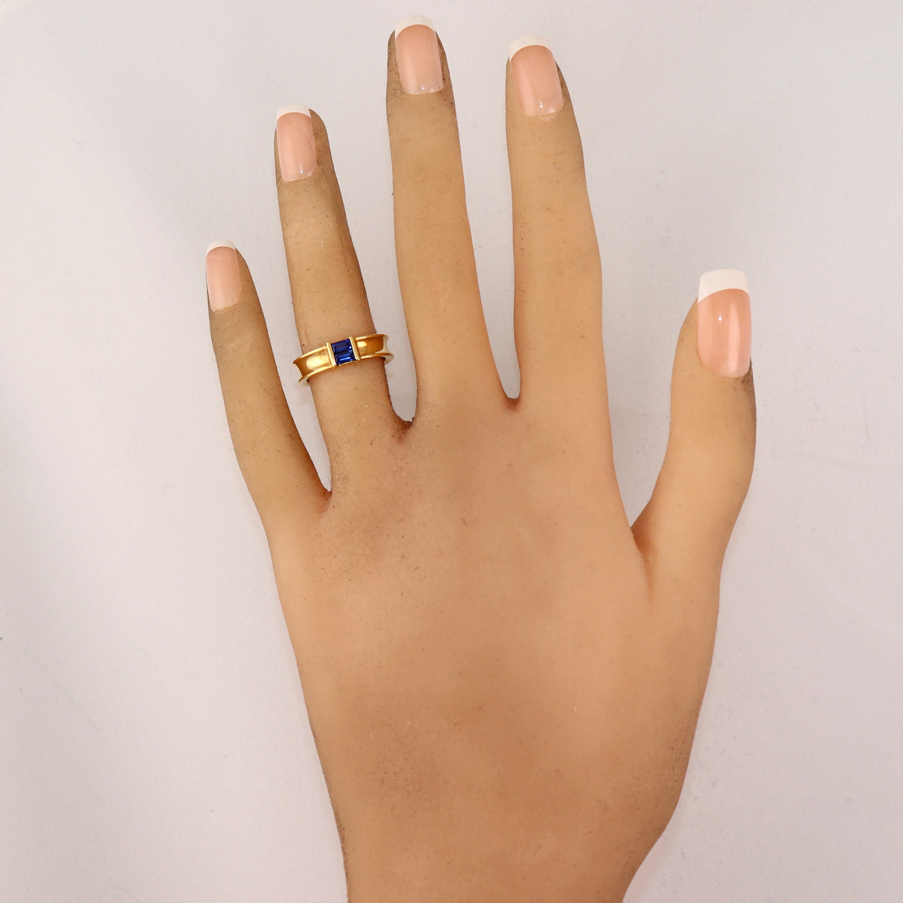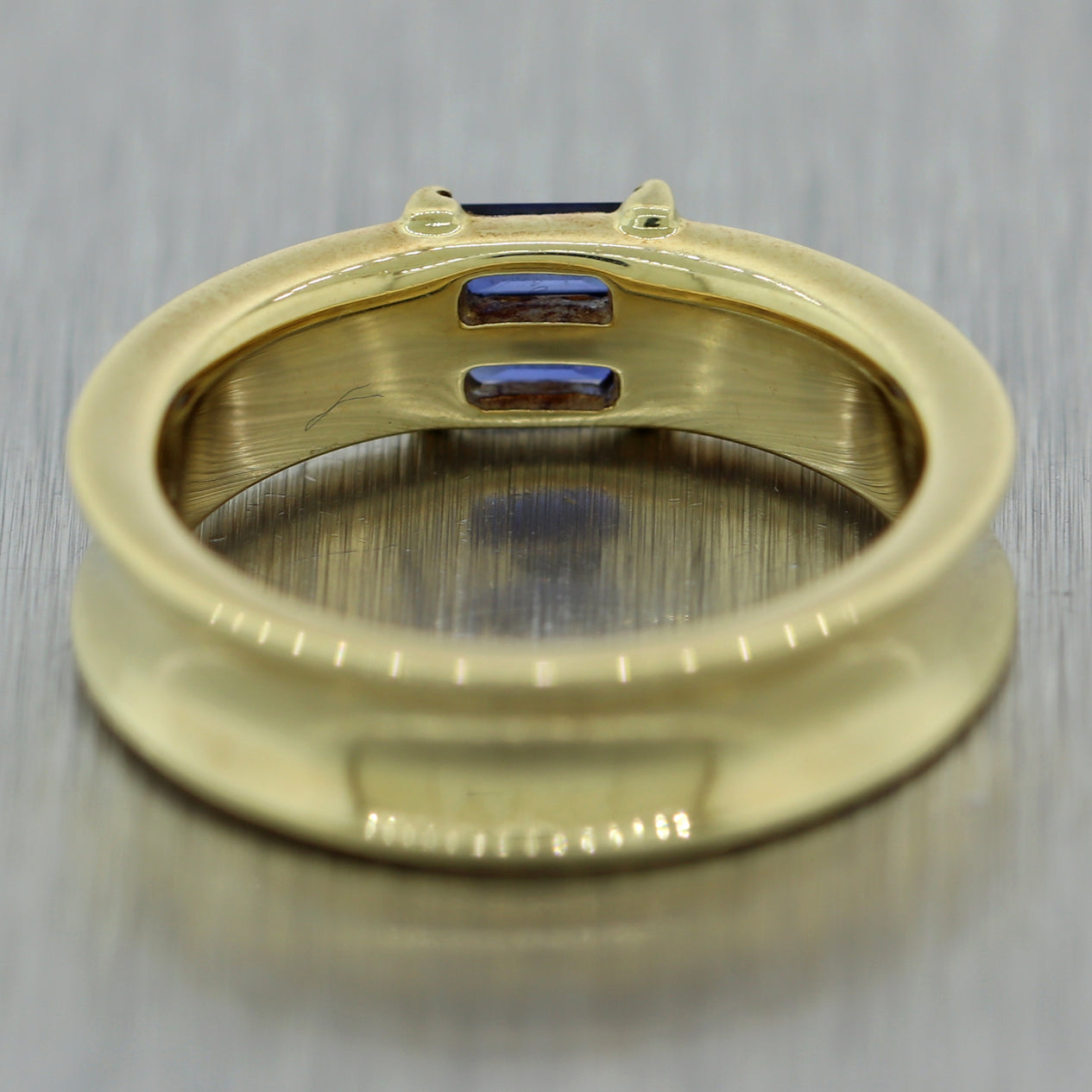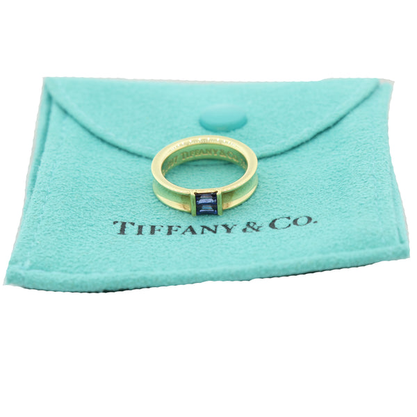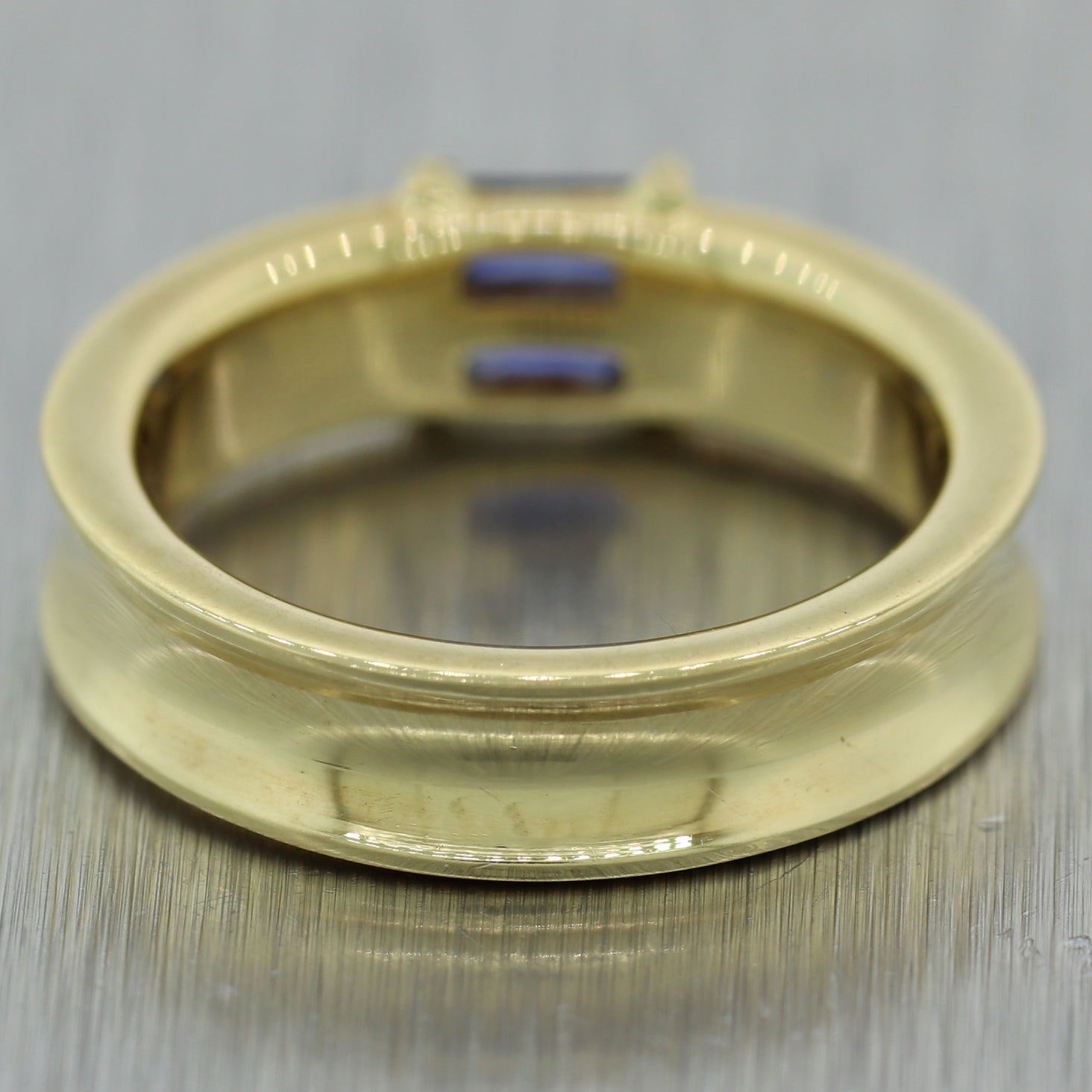 For your consideration, an authentic and original 1997 Tiffany & Co. 18k Yellow Gold 0.20ctw Baguette Cut Sapphire Band Ring. This piece will come in a lovely ring box for a perfect presentation and our unconditional 30 day money back return policy. A1