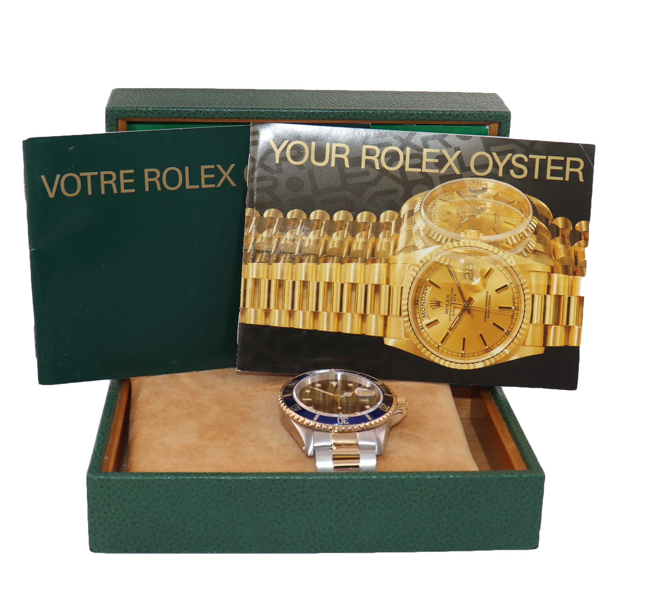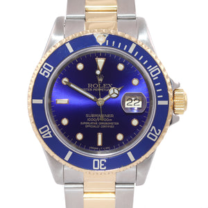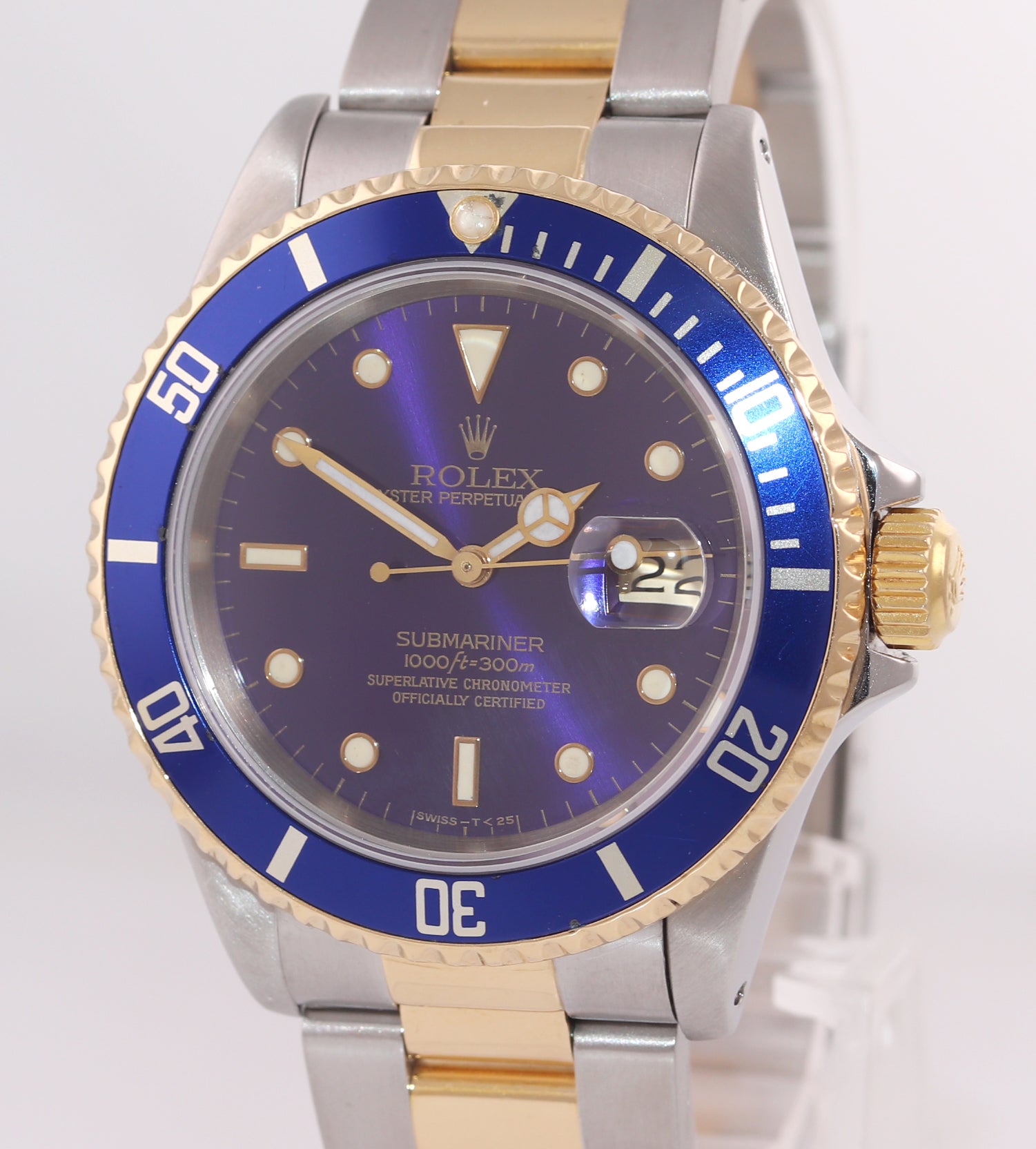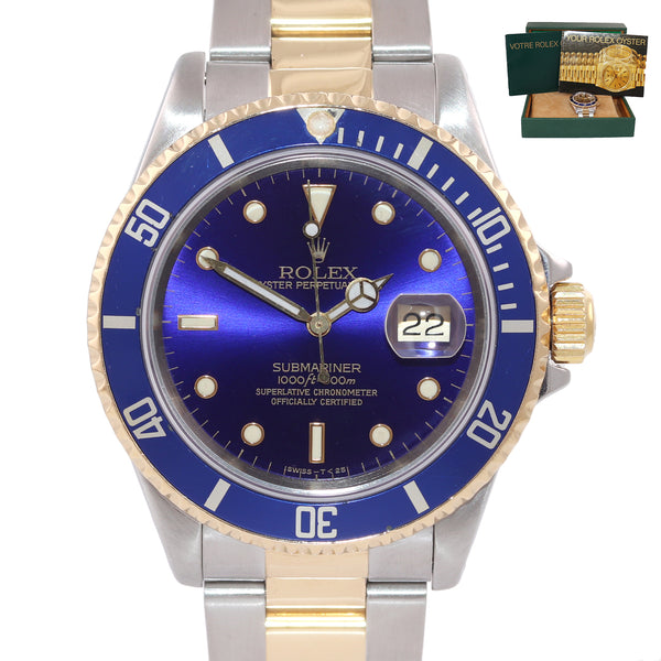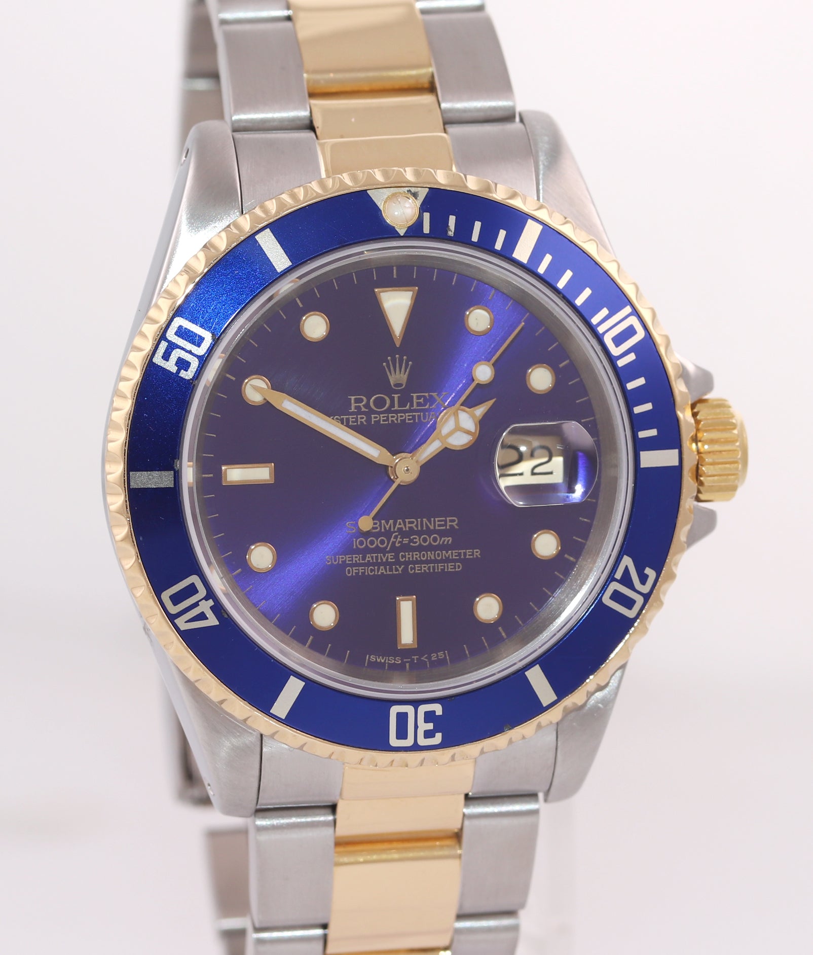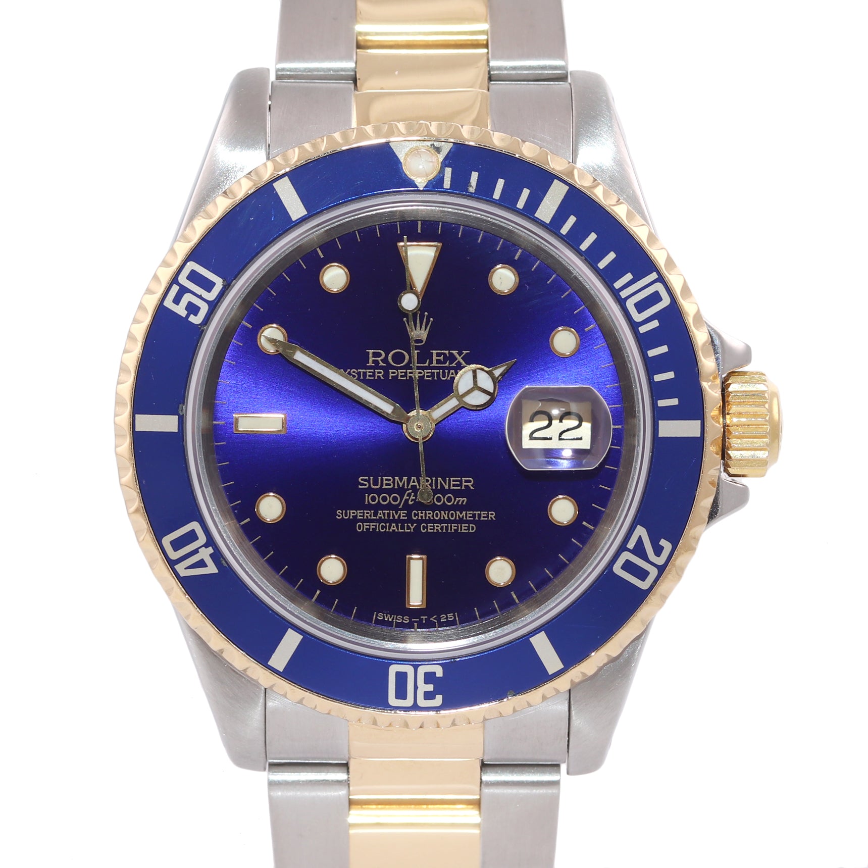 1Rolex Submariner 16613 Two Tone 18k Yellow Gold Blue Sunburst Dial 40mm Watch