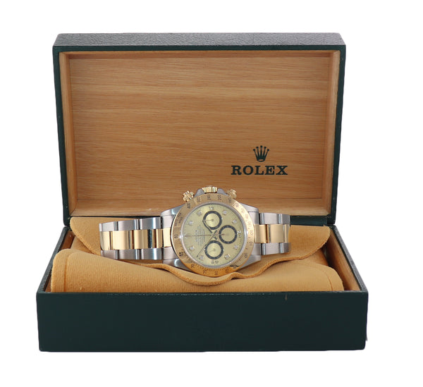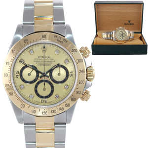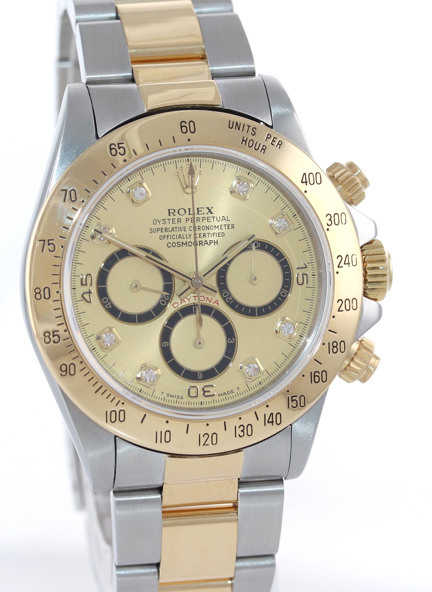 Rolex Daytona Zenith 16523 Two Tone Inverted 6 yellow Gold steel Cosmograph Champagne Diamond Watch