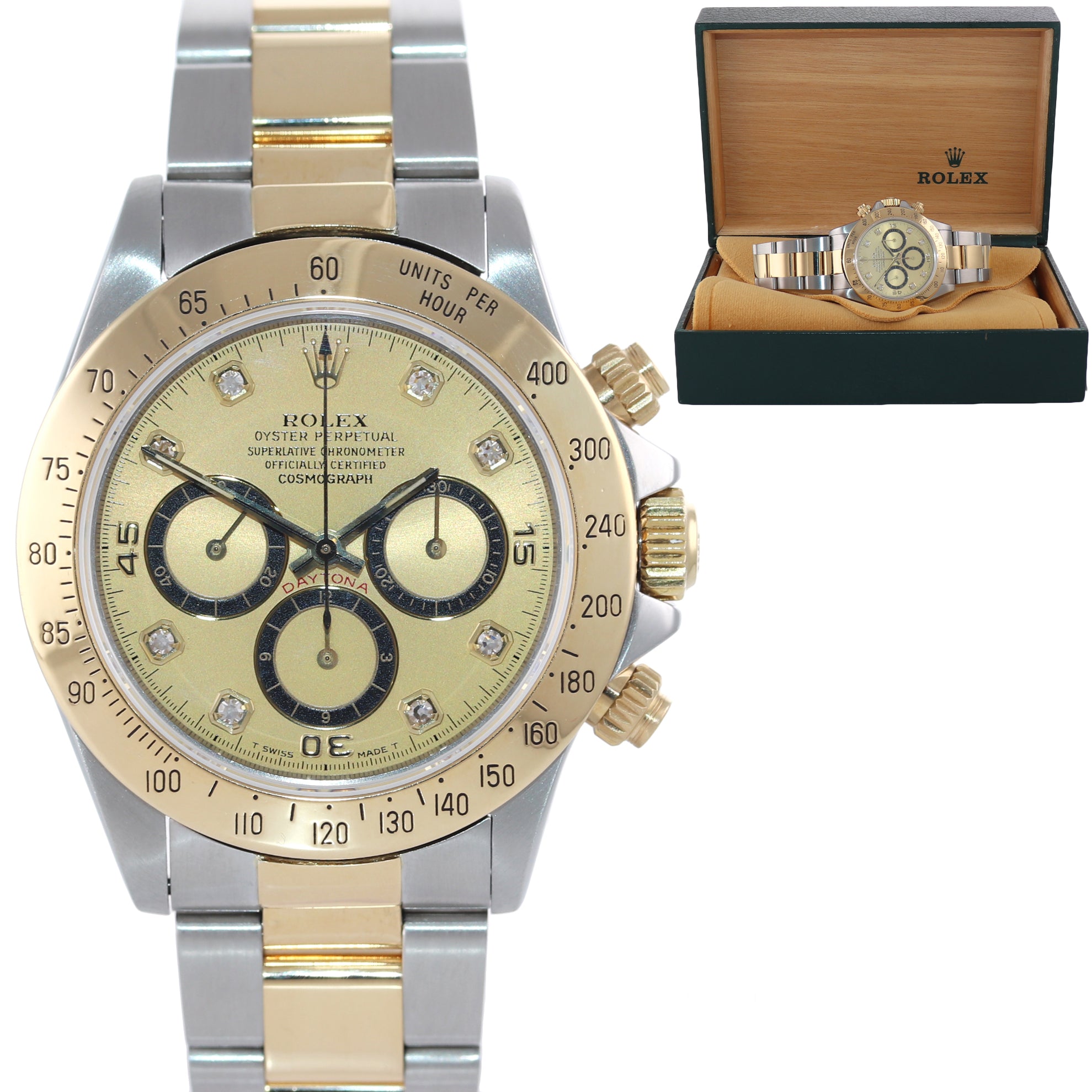 | Dial | Original Rolex Luminous Stick Champagne Chronograph Diamond Inverted 6 Dial |
