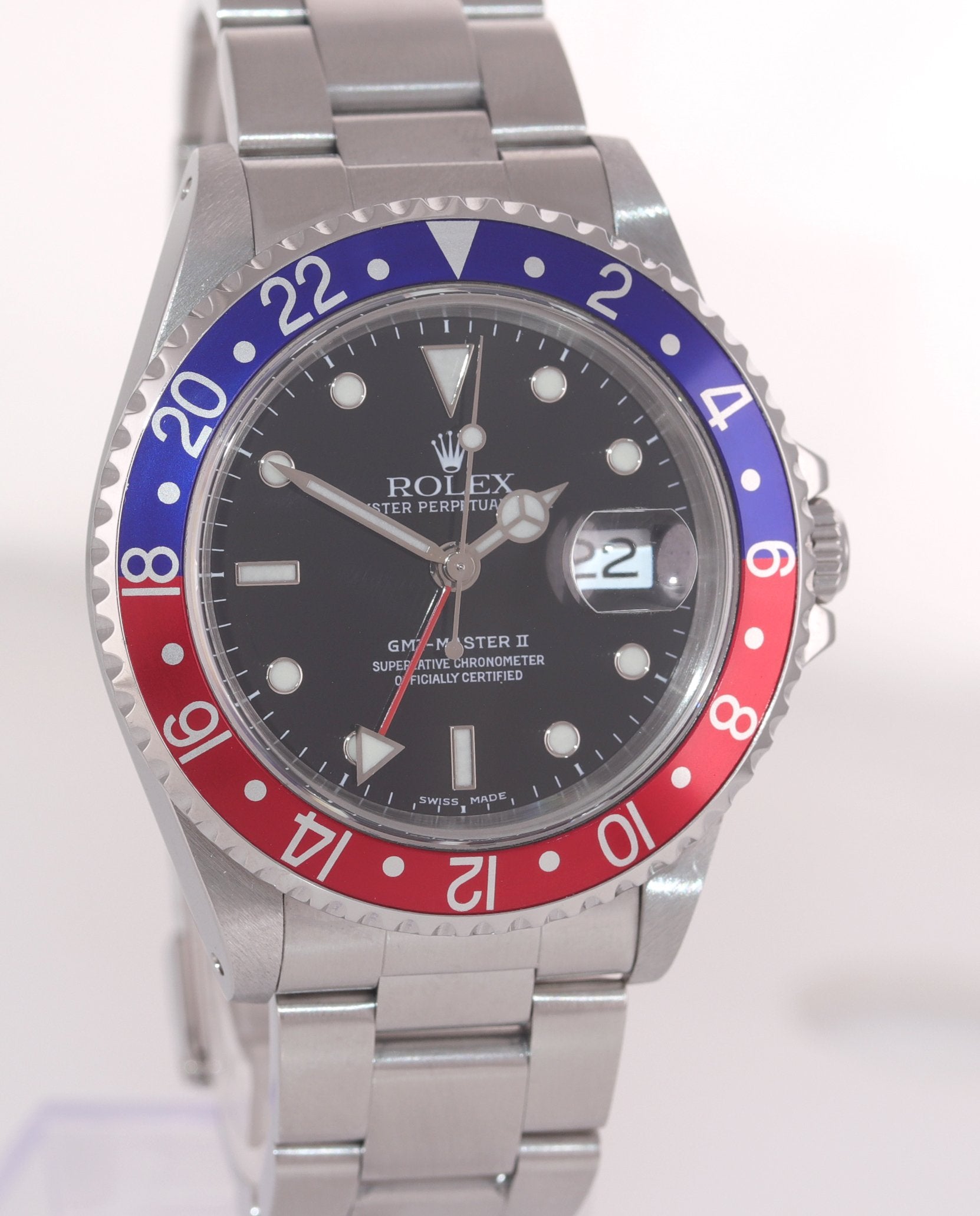 Rolex GMT-Master II Pepsi 40mm Steel 16710 Date Blue Red Watch