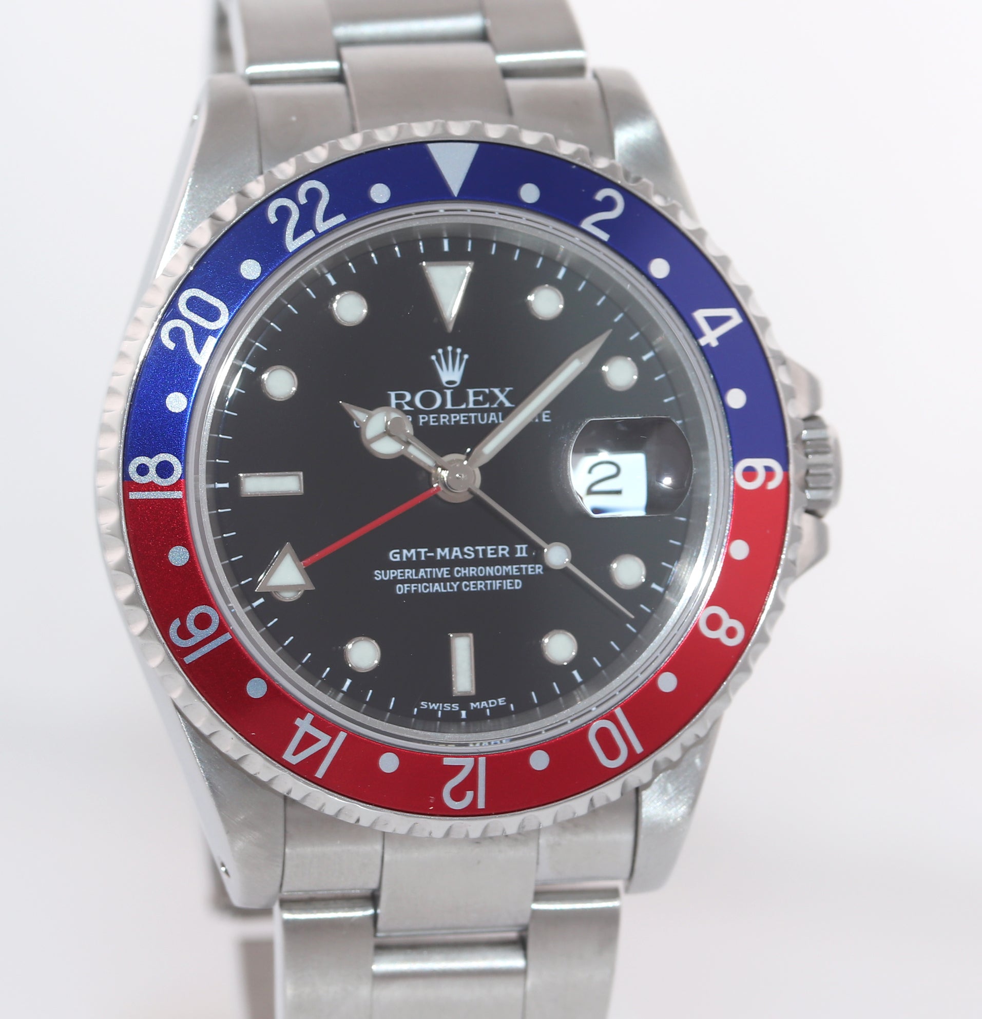 2001 Rolex GMT-Master II Pepsi Steel Blue Red 16710 Watch 40mm Watch Box