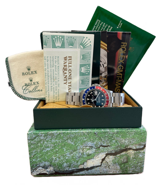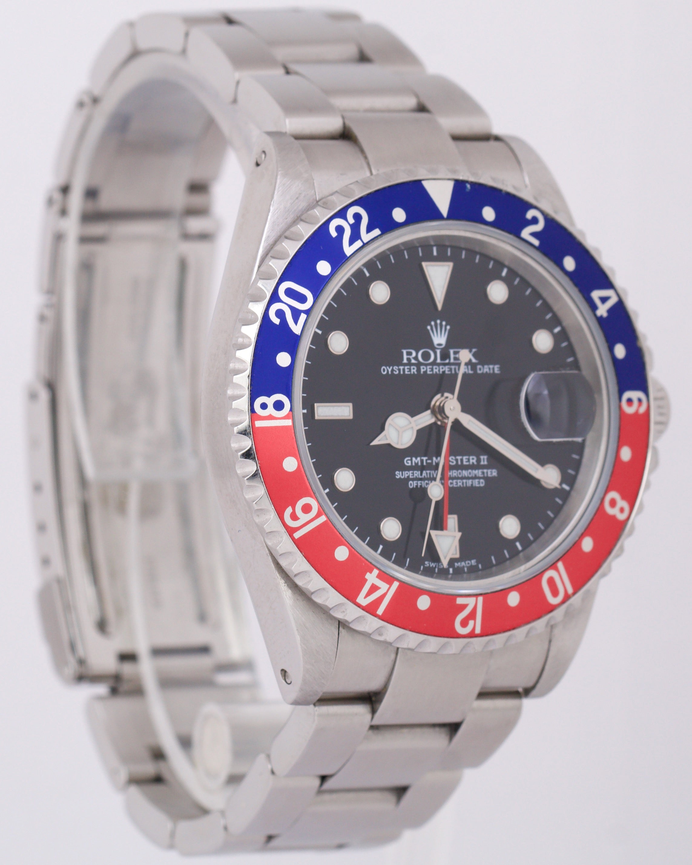 PAPERS Rolex GMT-Master II PEPSI Blue Red Stainless Steel 40mm 16710 Watch BOX