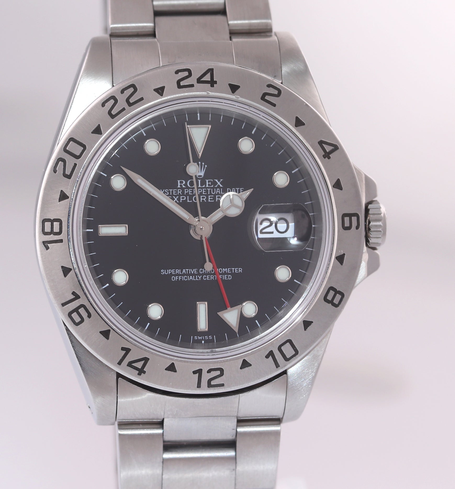 | Bezel | Original Rolex Fixed 24-Hour Graduated Stainless Steel Bezel; the bezel has light wear form use. |