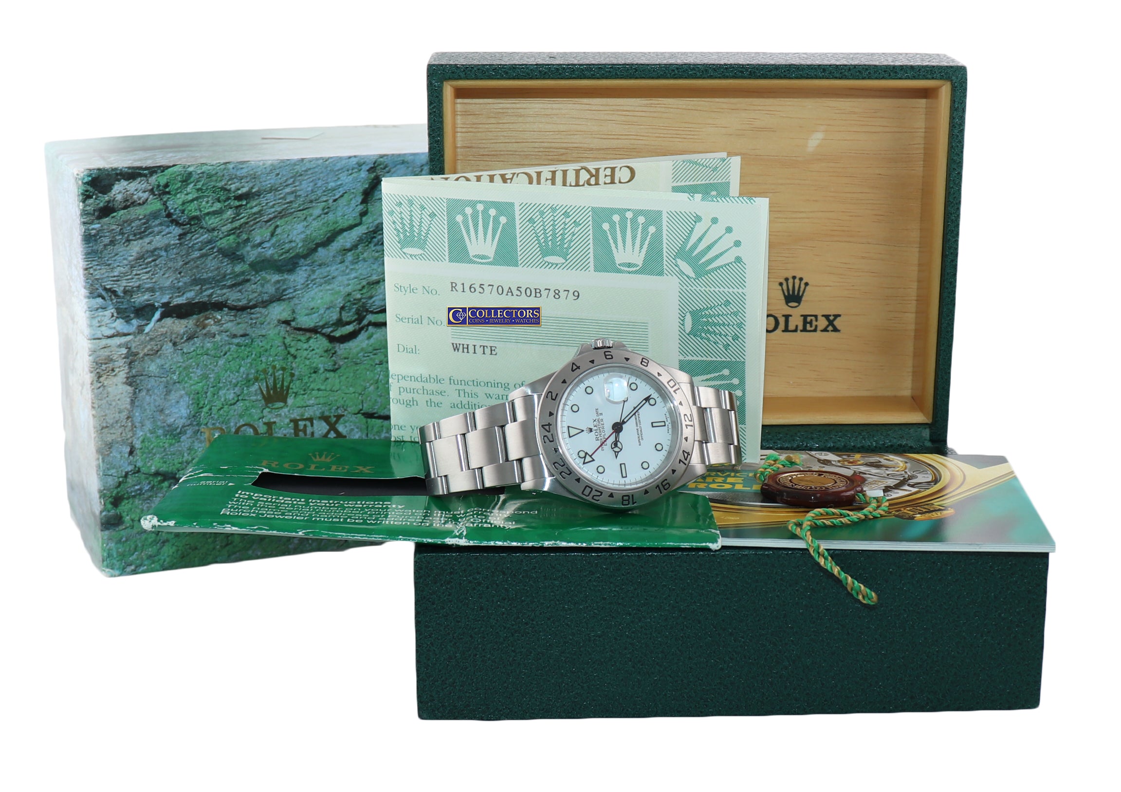 2001 WARRANTY PAPERS Rolex Explorer II 16570 Polar Steel Date GMT Watch Box