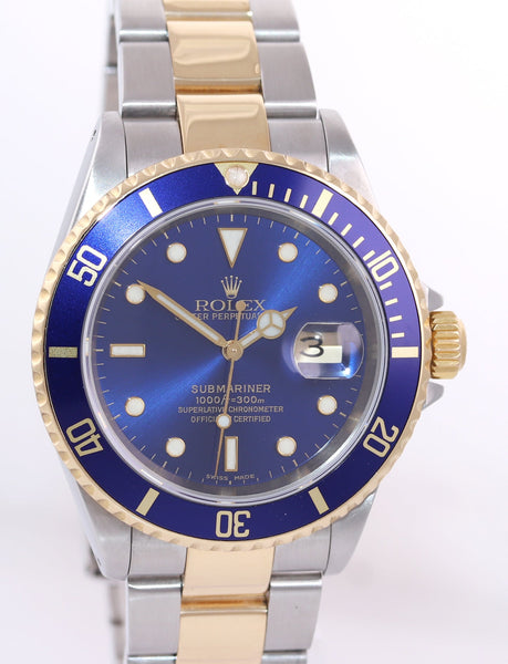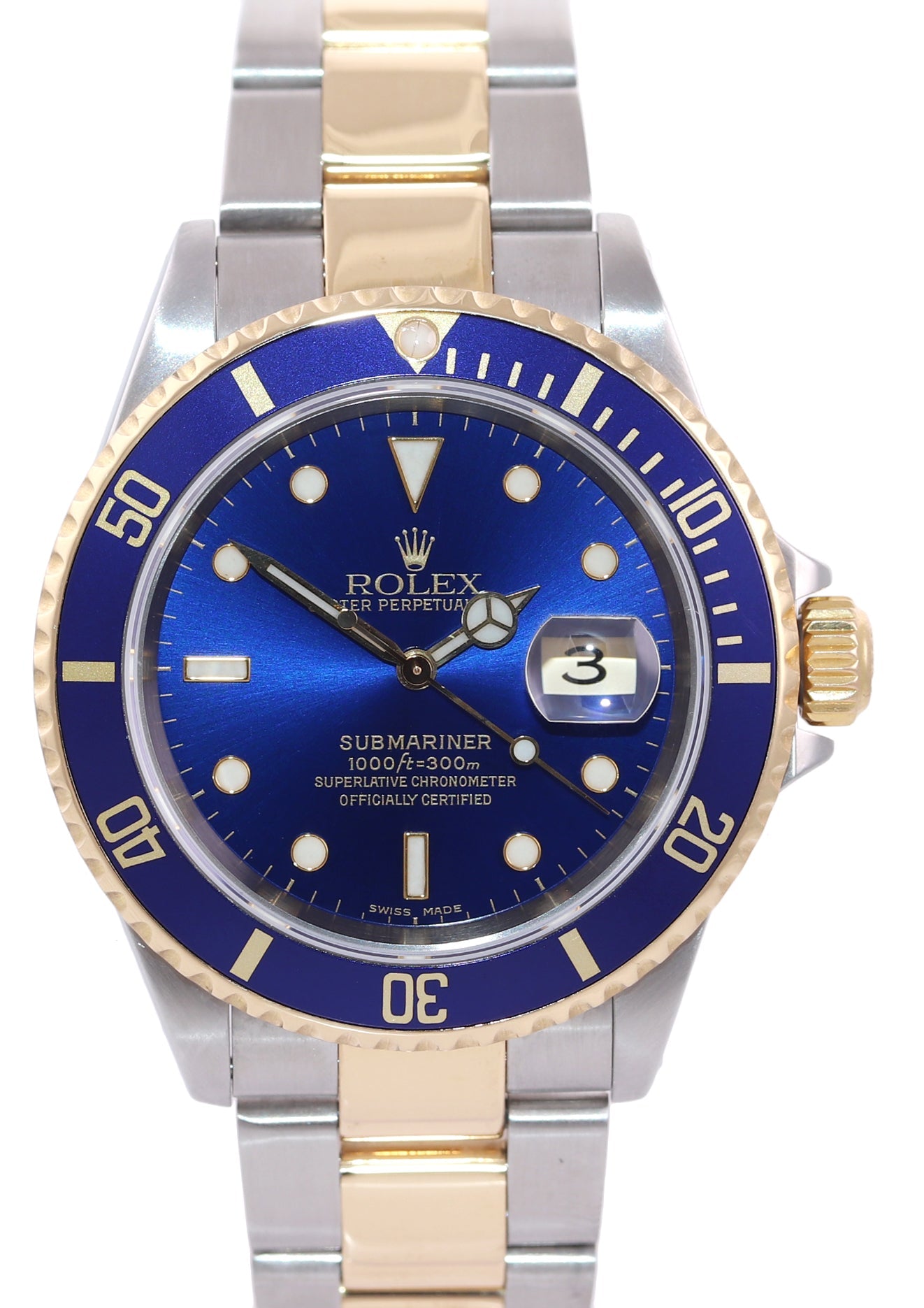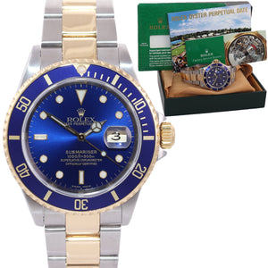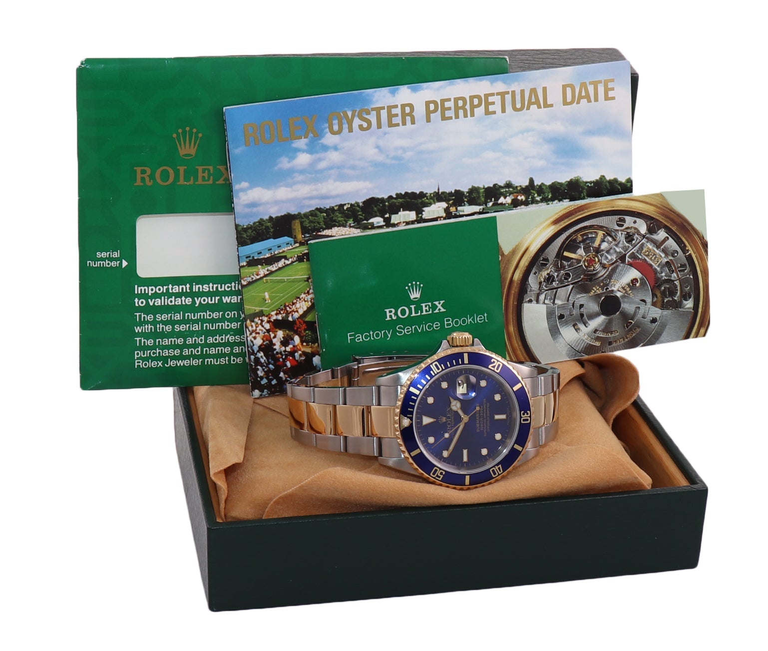 2002 Rolex Submariner 16613 Two Tone Gold Blue 40mm Watch Box Gold Buckle