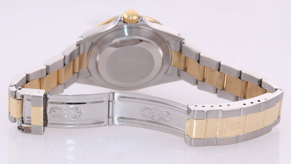 Band Rolex Two-Tone Solid End Link Oyster Bracelet with a Flip Lock extendable Deployment Clasp and gold thru the buckle.