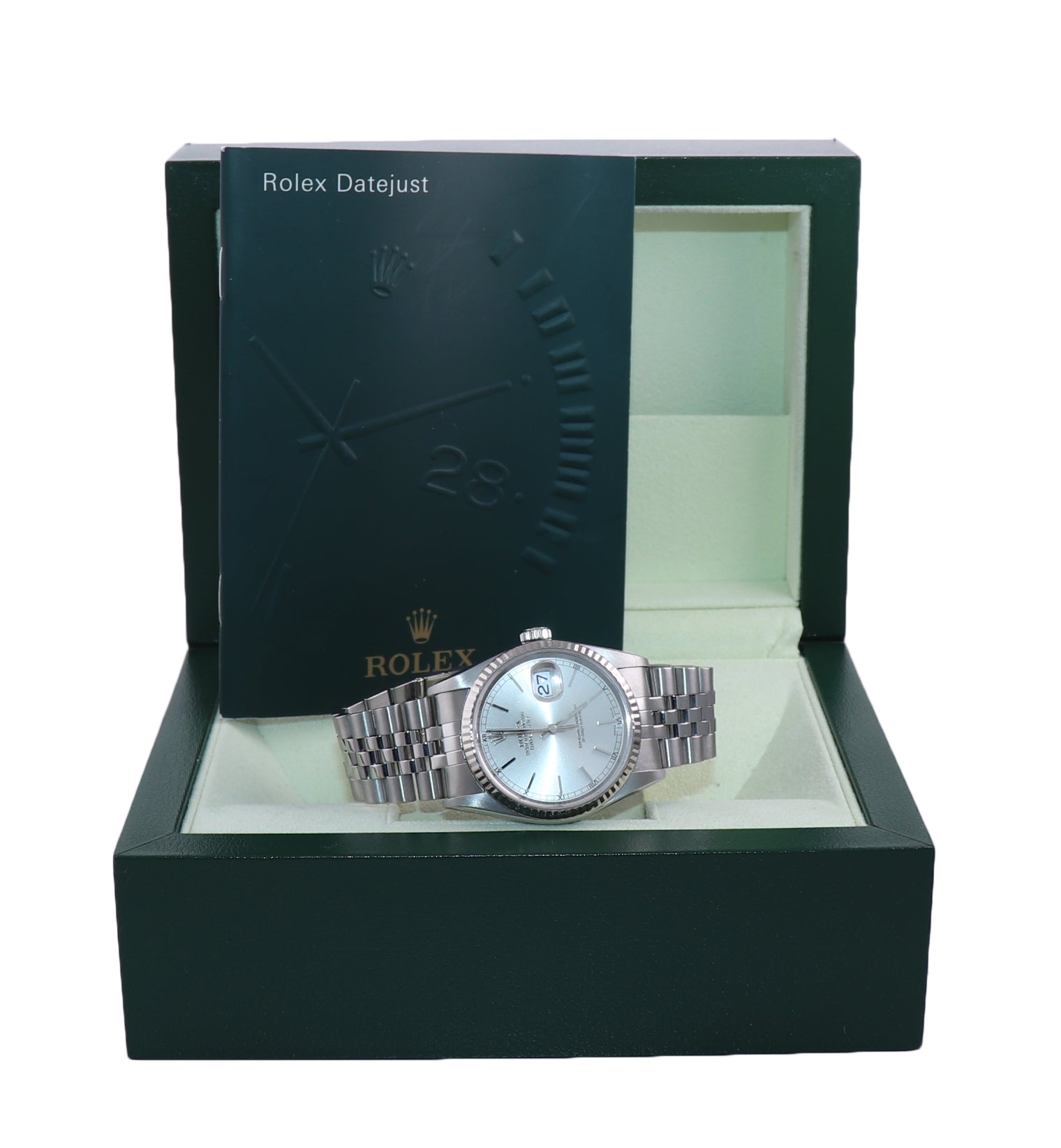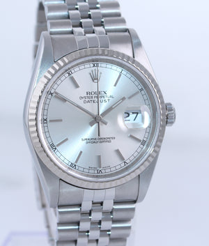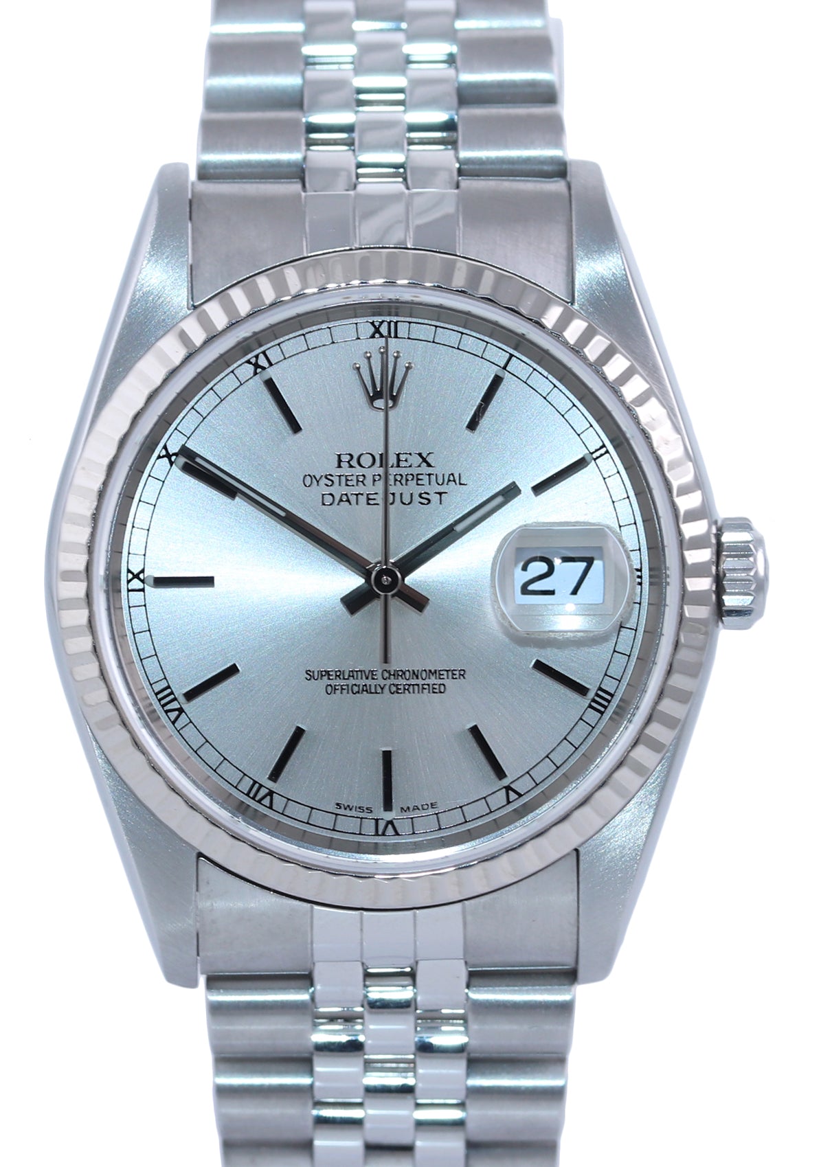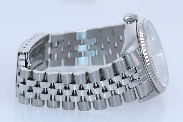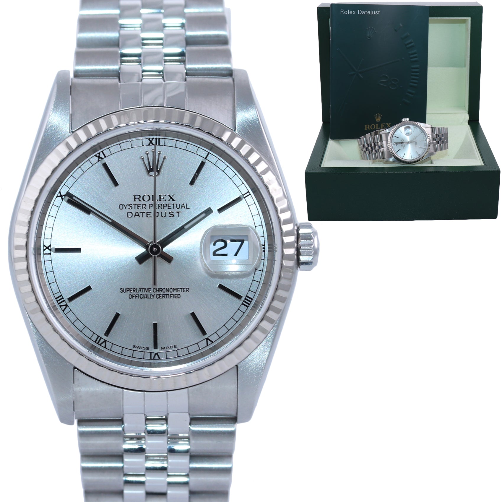 2005 MINT Rolex DateJust 36mm 16234 Steel Silver Stick Jubilee 18k White Gold Date Watch