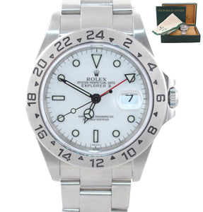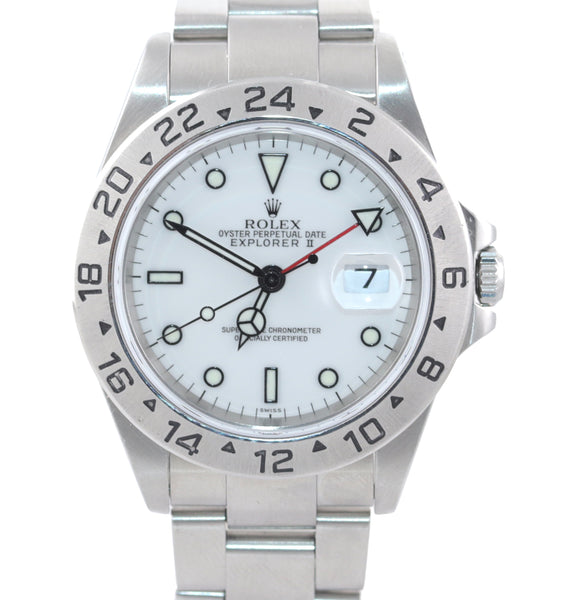 MINT Rolex Explorer II 16570 Stainless Steel White Polar GMT SEL 40mm Watch.