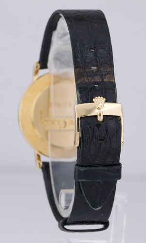 | Band | Black Leather Strap with 18K Yellow Gold Tang Buckle |