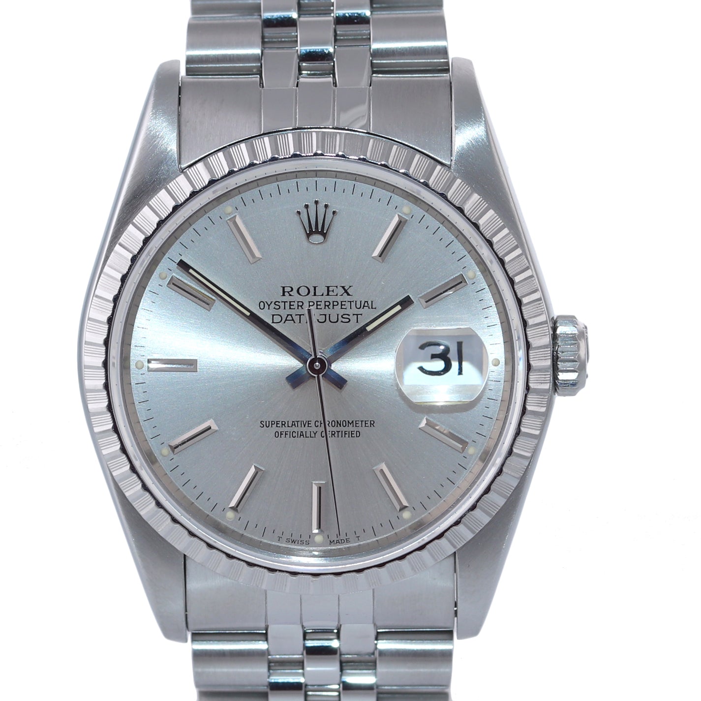 | Bezel | Original Rolex Engine-Turned Fluted Stainless Steel Bezel |