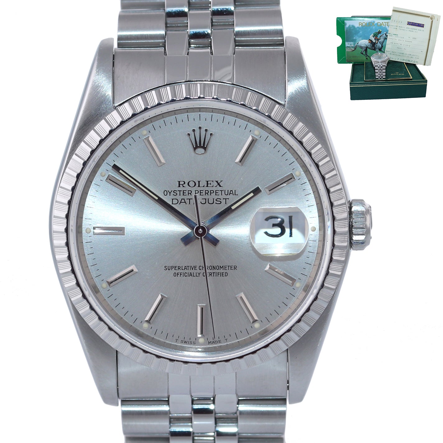 MINT PAPERS Rolex DateJust 36mm 16220 Steel Silver Stick Jubilee 36mm Watch Box
