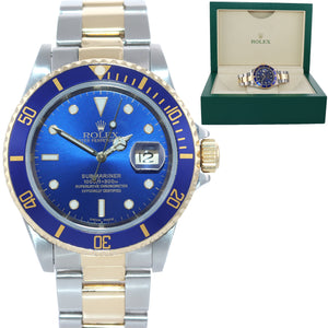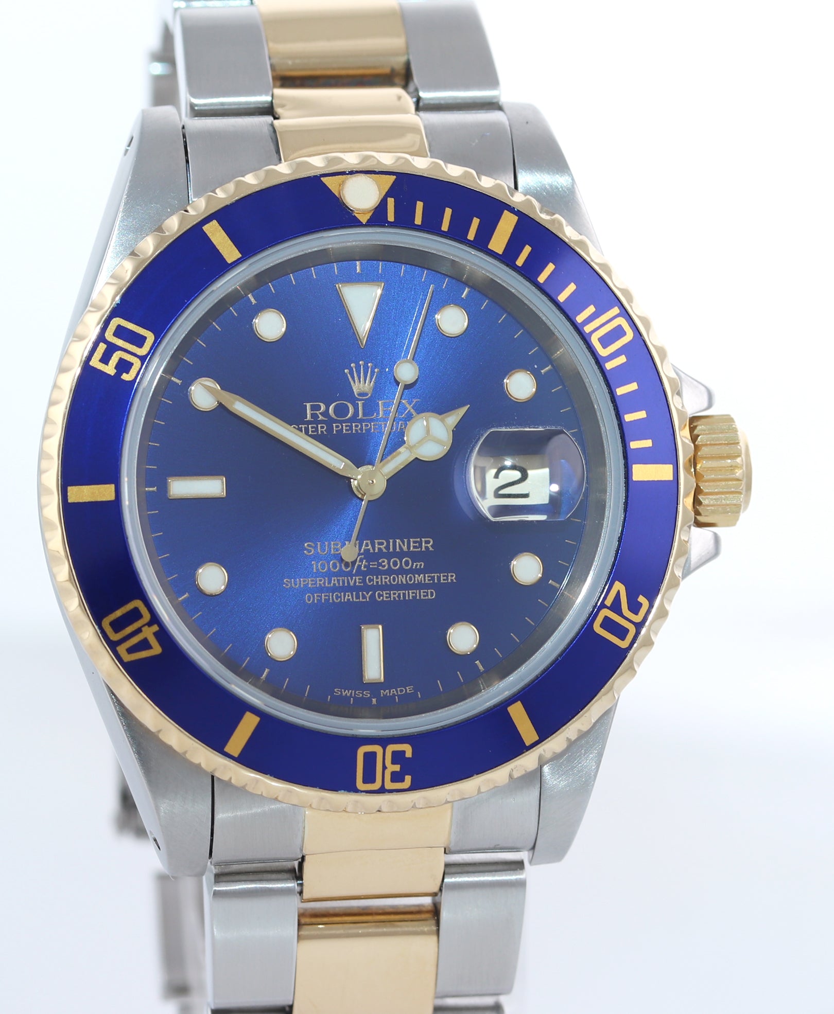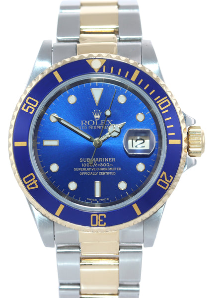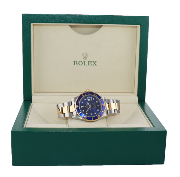 Rolex Submariner 16613 Two Tone Yellow Gold Blue Dial 40mm Watch Box Collectors