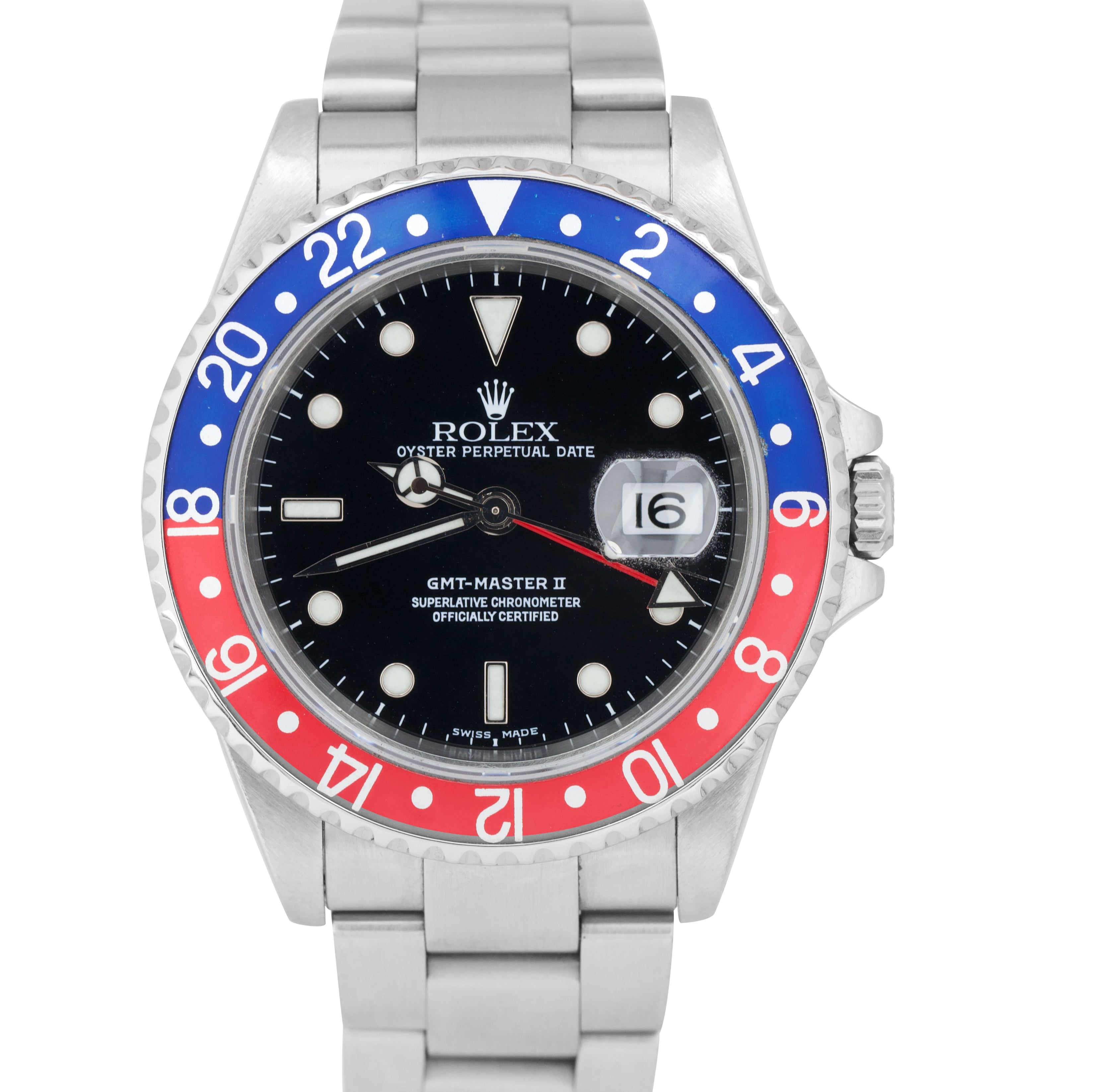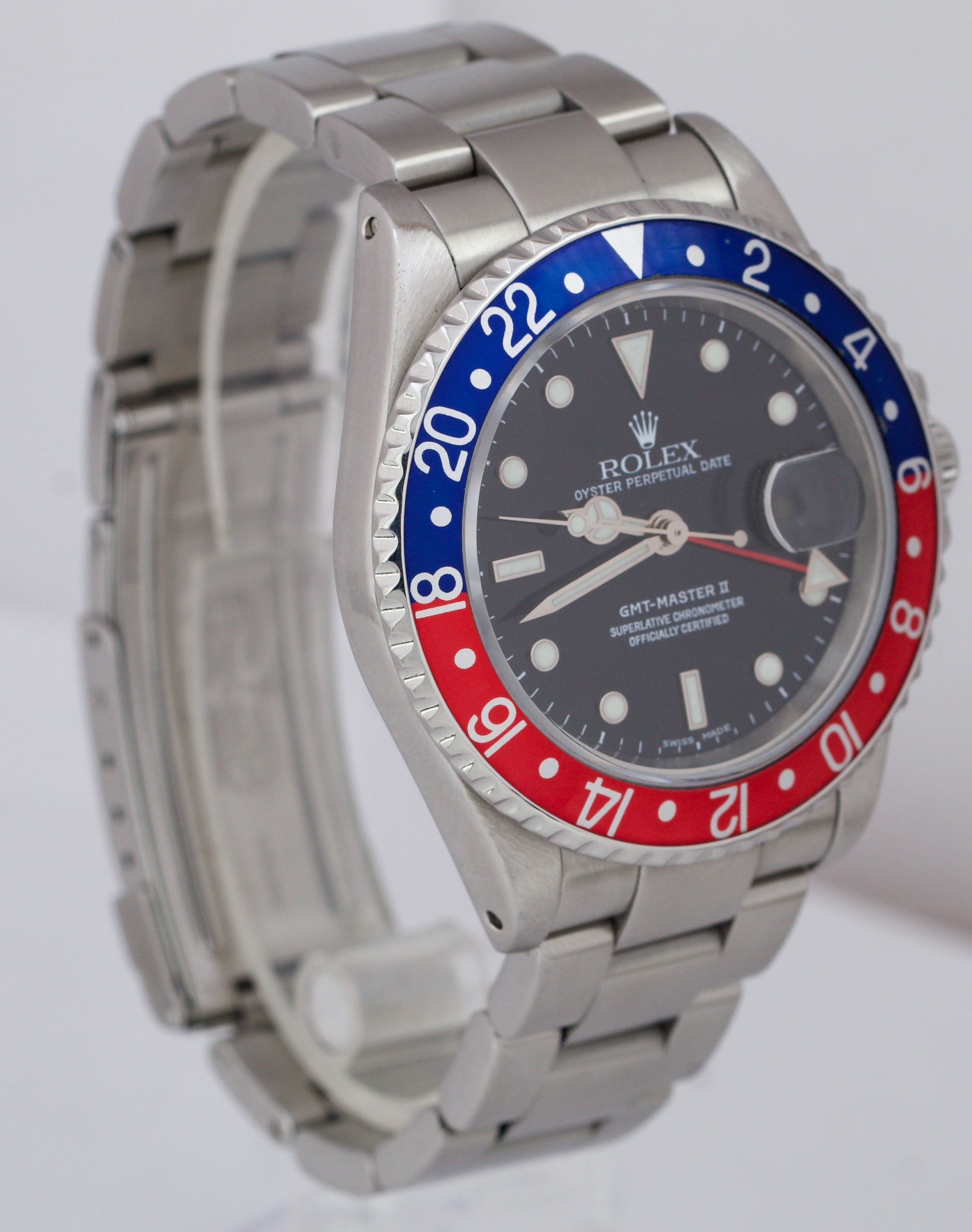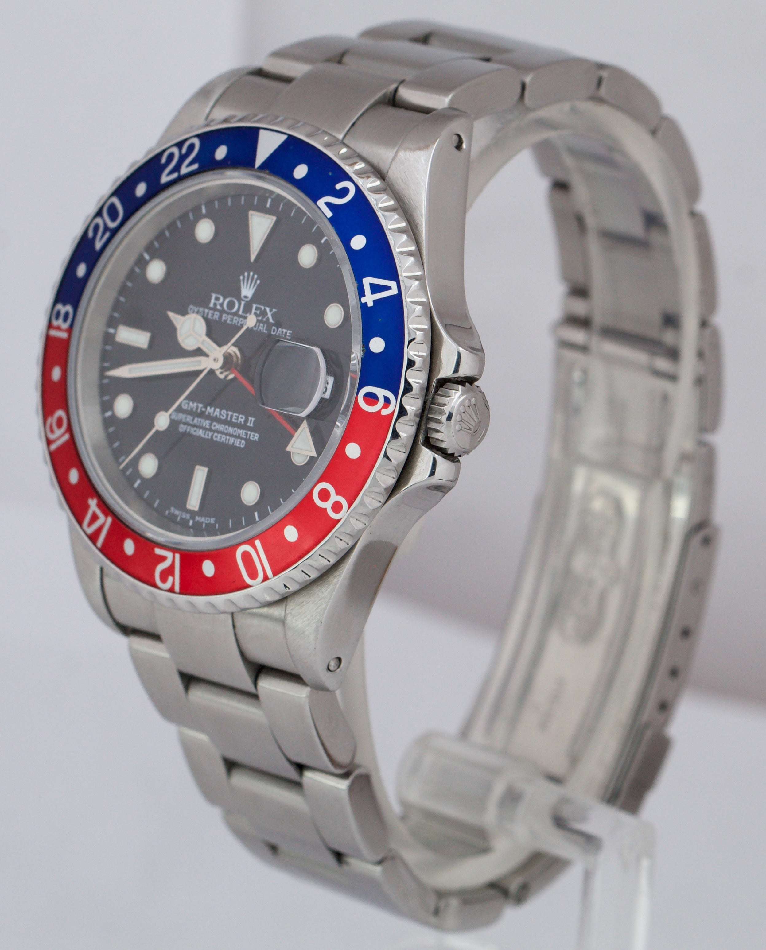 2002 Rolex GMT-Master 40mm PEPSI Blue / Red Bezel Stainless Steel Watch 16710
