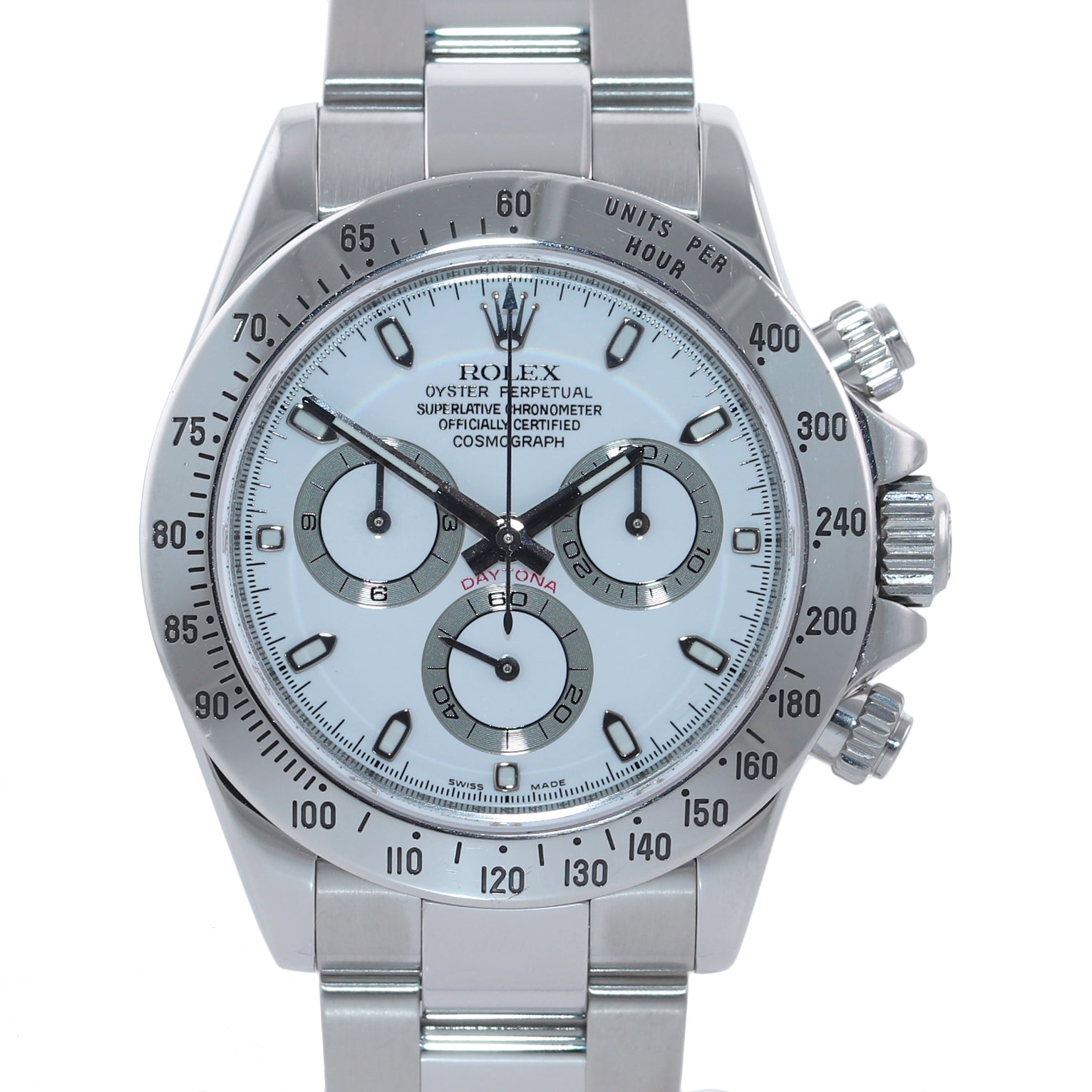 | Bezel | Original Rolex Fixed Stainless Steel Bezel with an engraved tachymetric scale |
