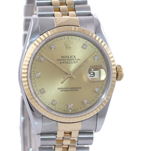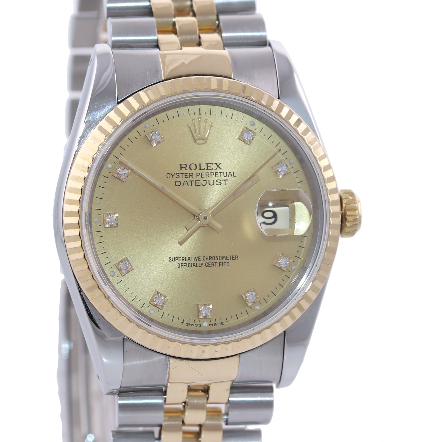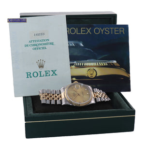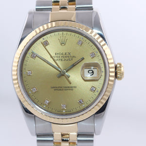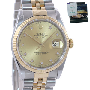 PAPERS Rolex DateJust 36mm 16233 Two Tone 18k Gold Jubilee Champagne Roman Watch Box