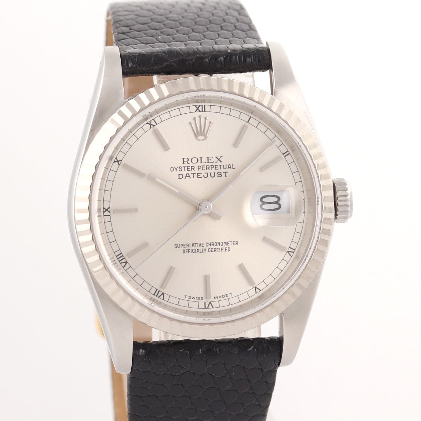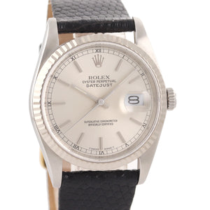 Rolex DateJust 36mm 16234 Steel Silver Stick Oyster 18k Gold Date Watch