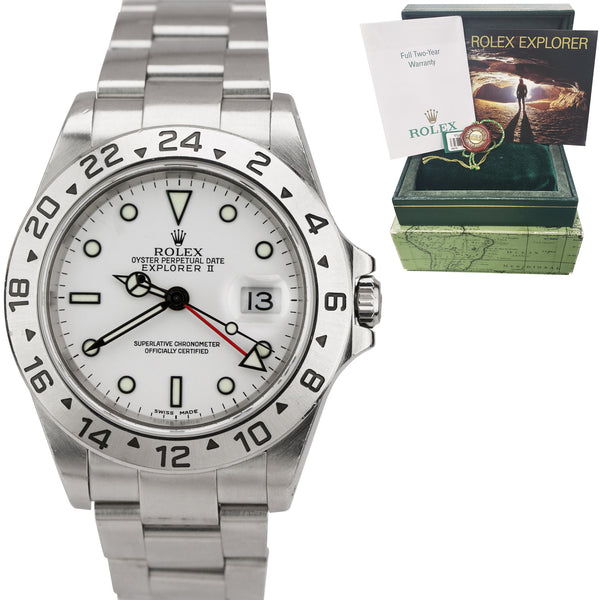 2003 Rolex Explorer II Polar White Stainless Steel 40mm GMT SEL Watch 16570 B+P