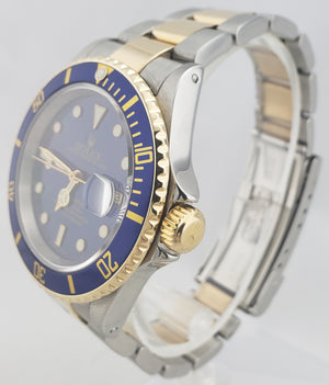 2003 Rolex Submariner 16613 Two-Tone Stainless Blue Date Dive 40mm Watch SEL B+P