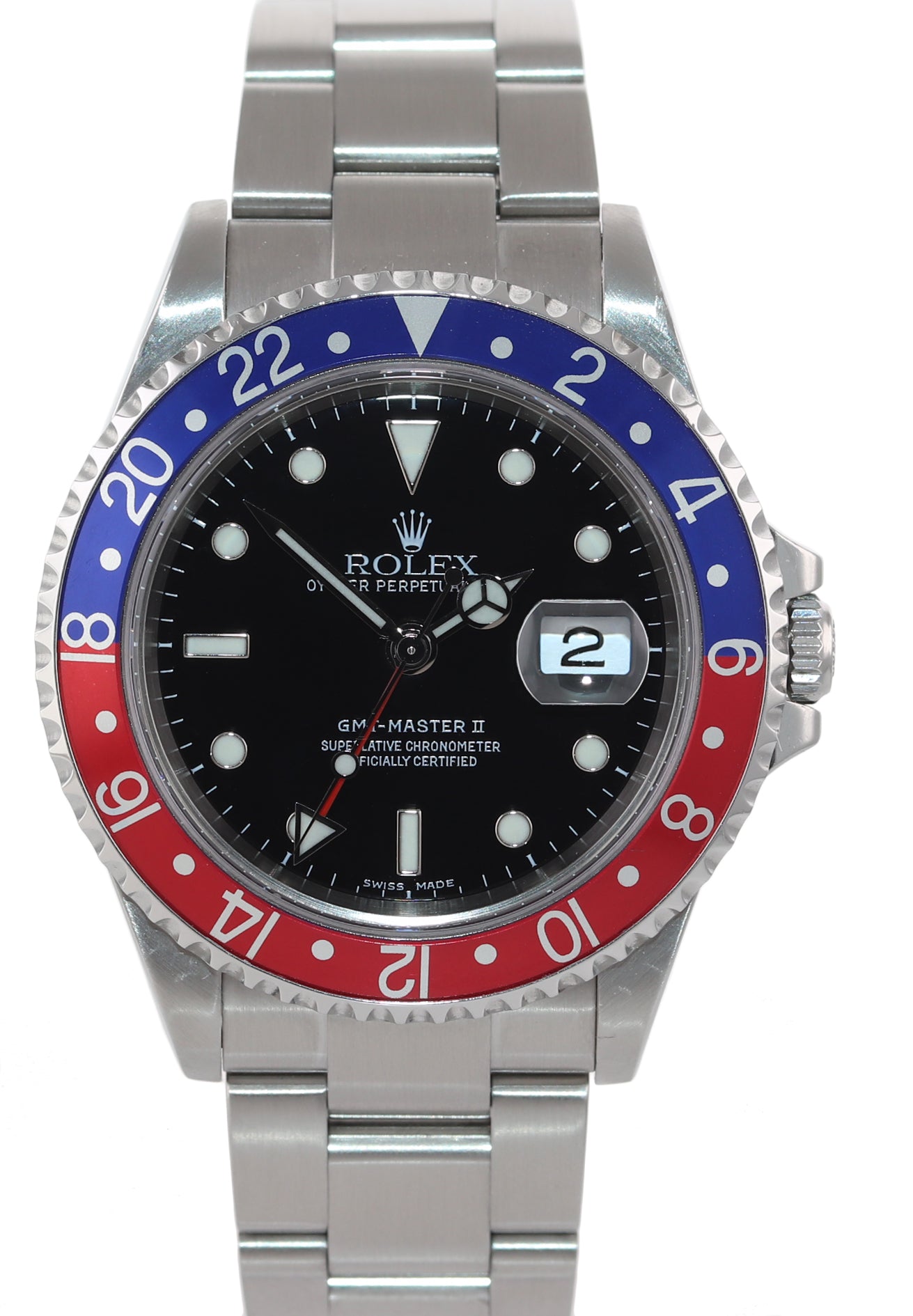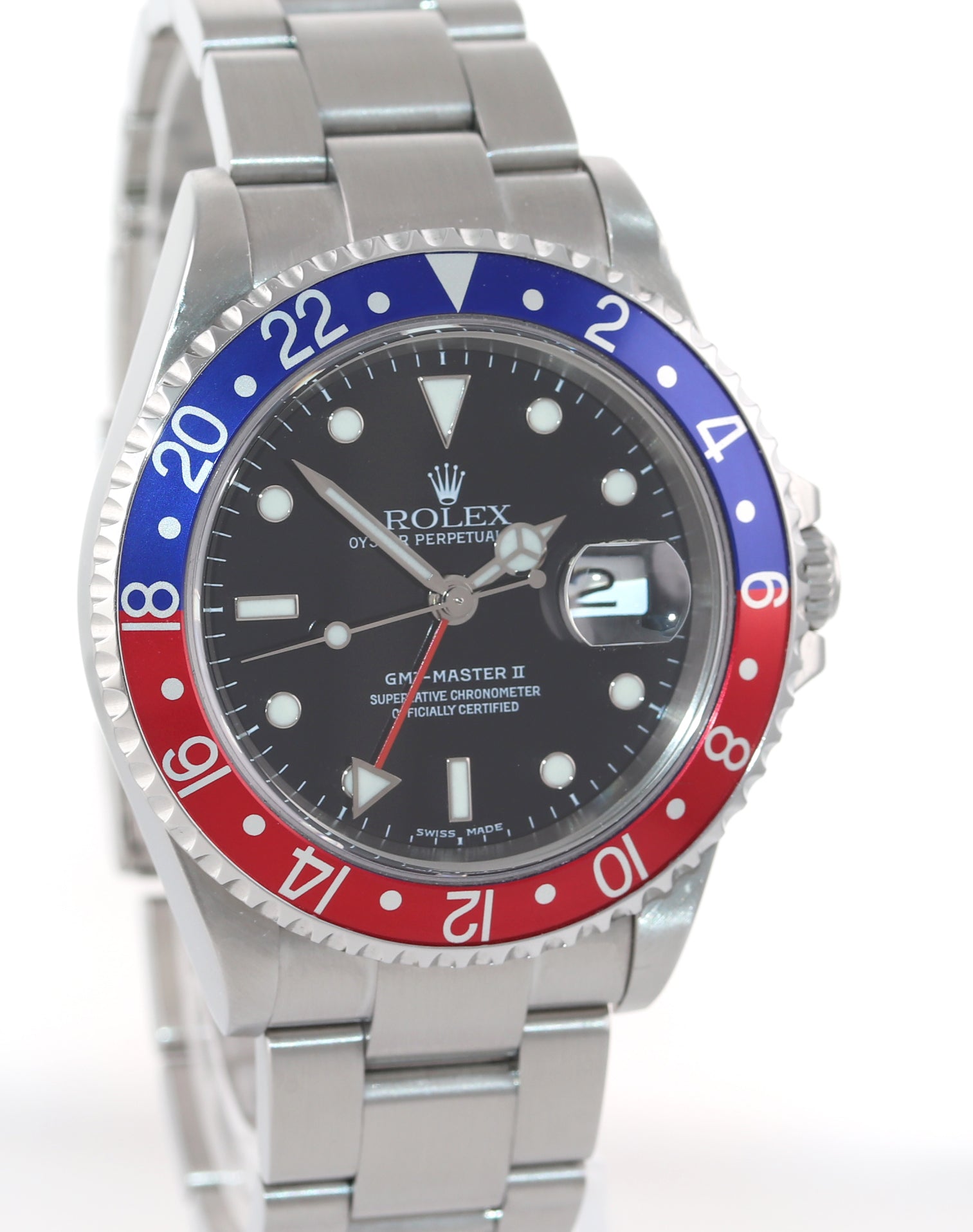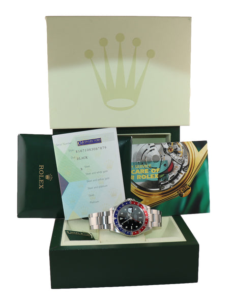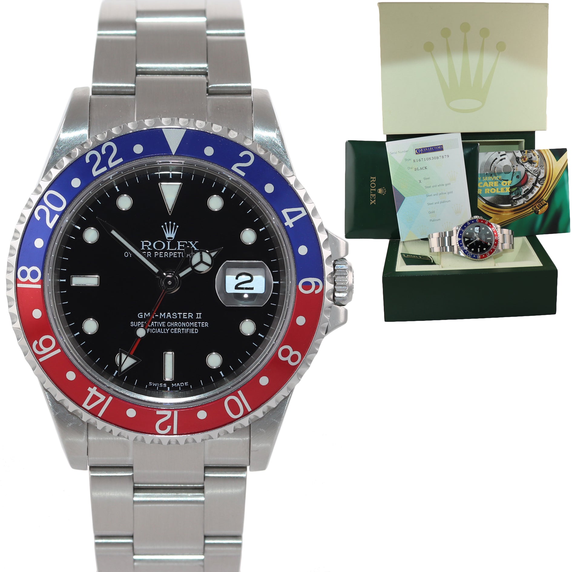 2006 PAPERS Rolex GMT-Master 2 Pepsi Blue Red Steel 16710 40mm NO HOLES Case Watch Box