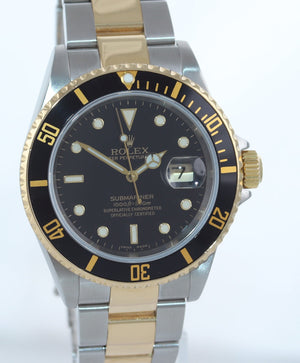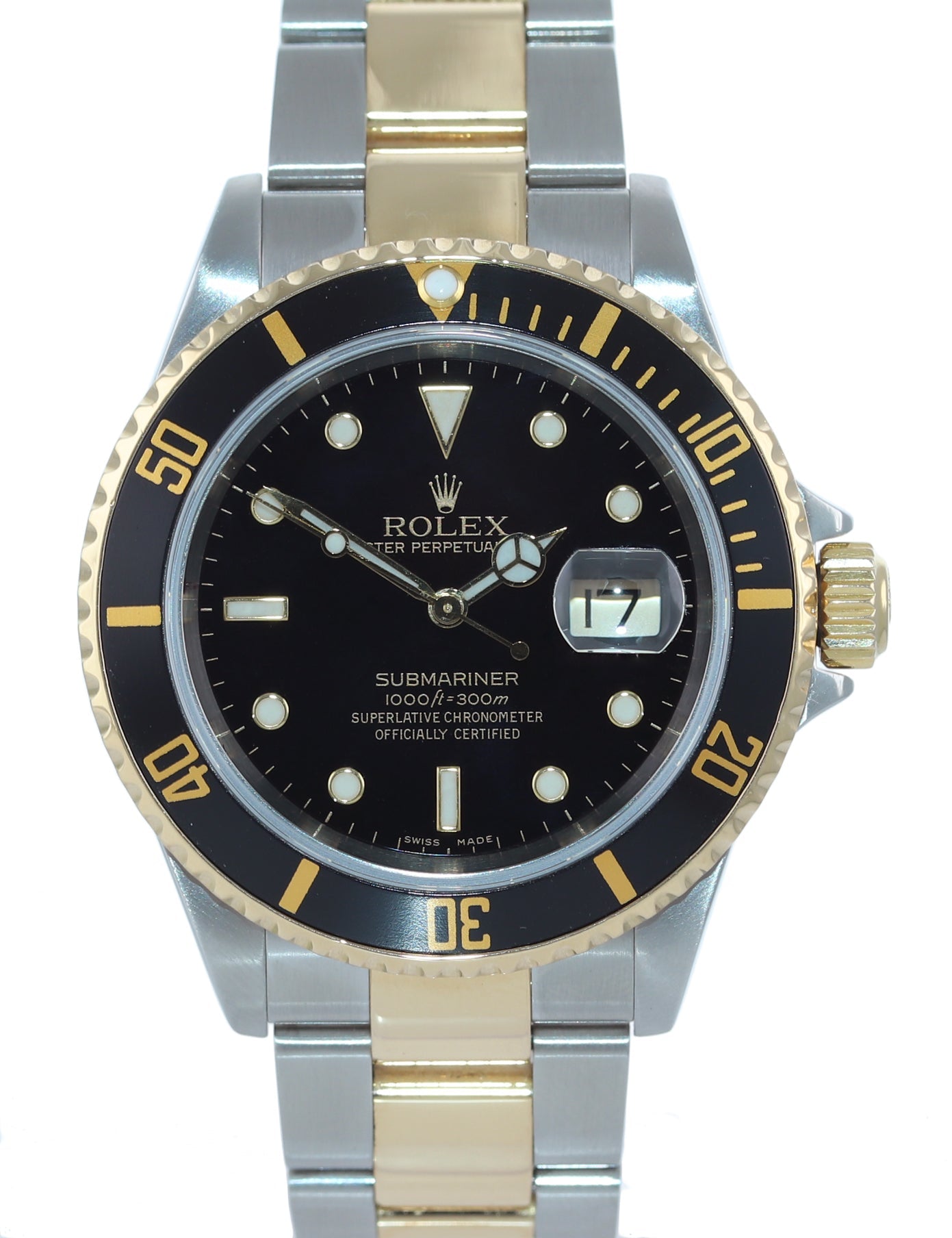 2004 GOLD BUCKLE Rolex Submariner 16613 Gold Steel Black dial Watch Box