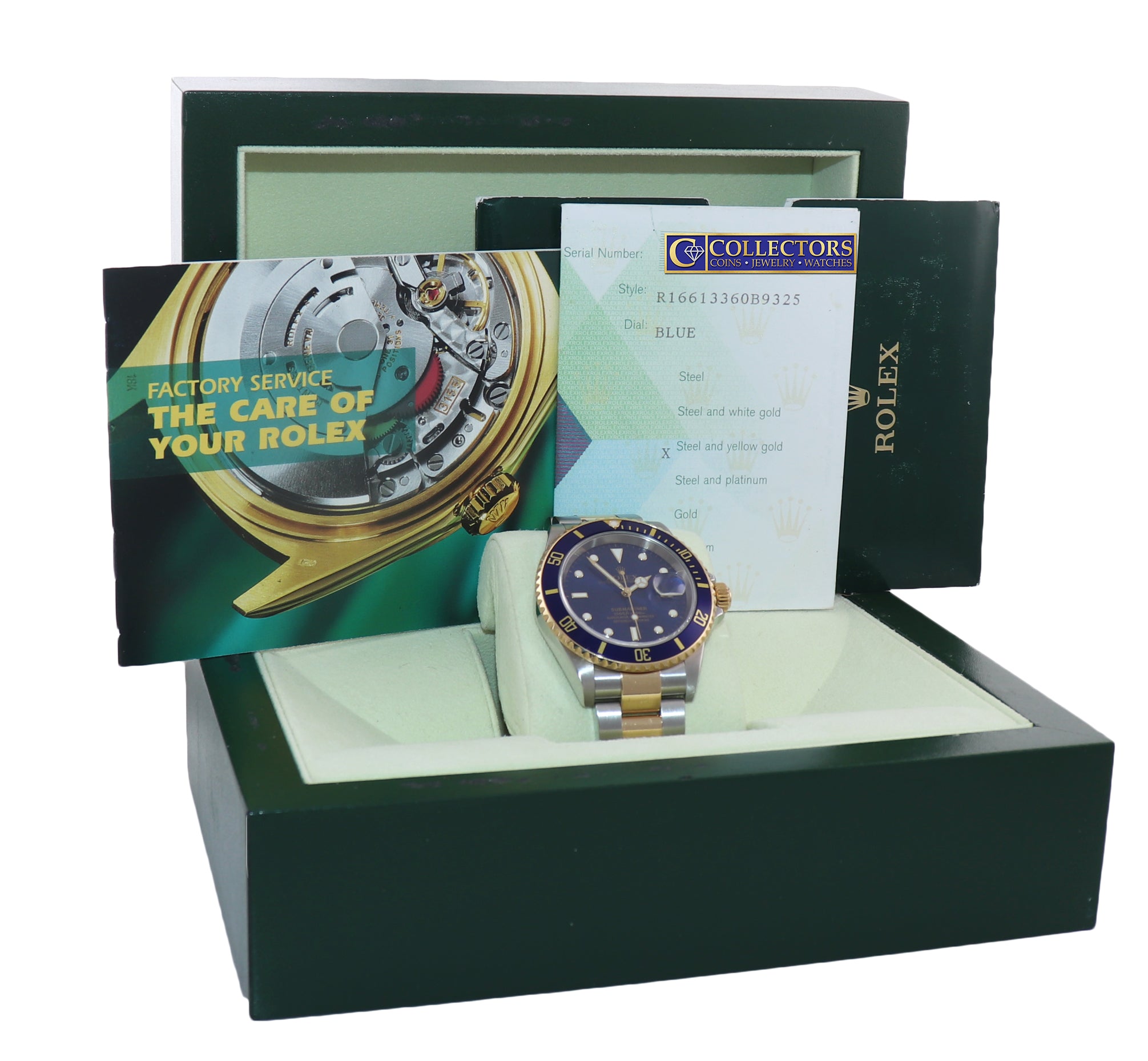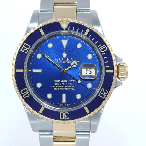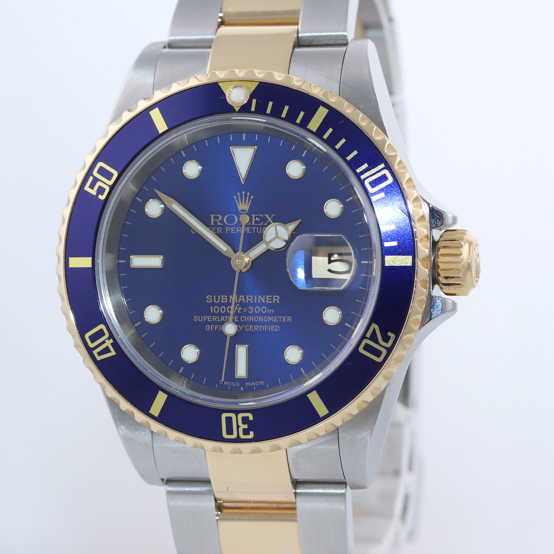 PAPERS 2003 MINT Rolex Submariner 16613 Two Tone Steel 18k Gold Blue Dive Watch Box