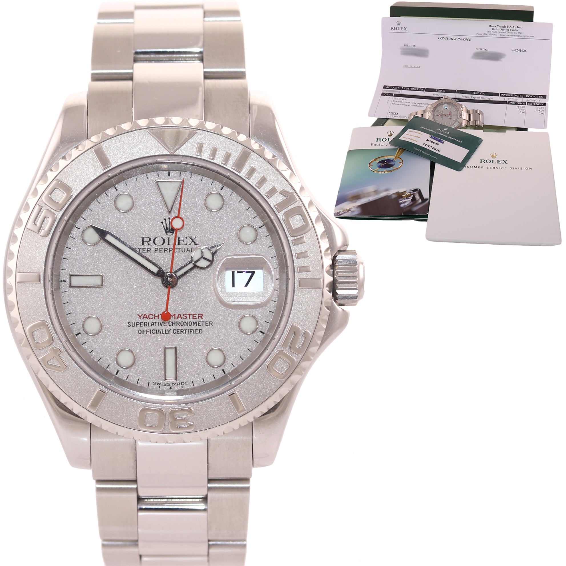 2020 RSC SERVICE Rolex Yacht-Master 16622 Steel Platinum Bezel 40mm Watch Box