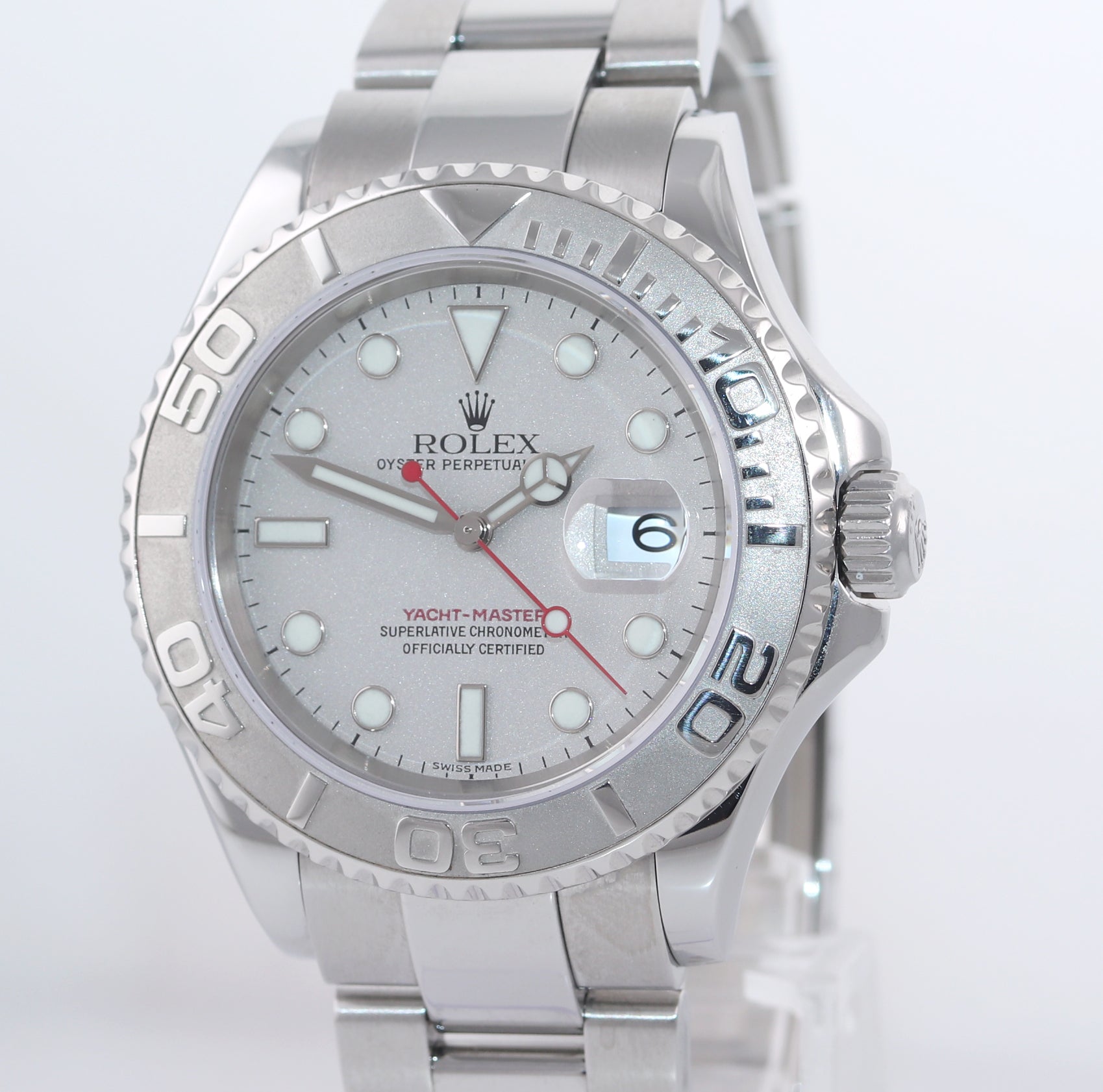 | Dial | Rolex Platinum Luminous Index Dial with the date at the 3 o'clock and a red seconds hand |