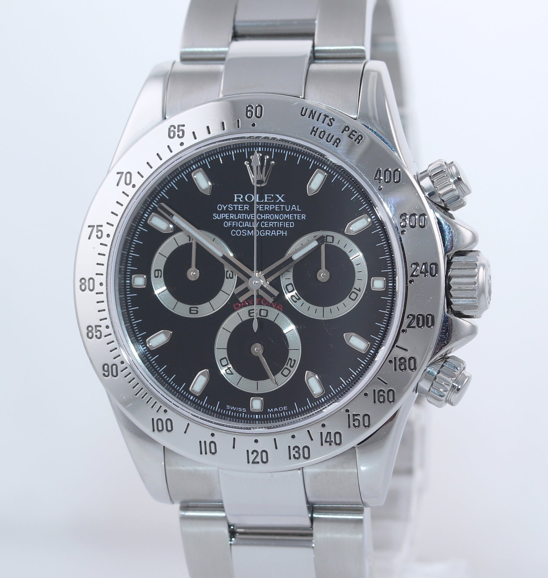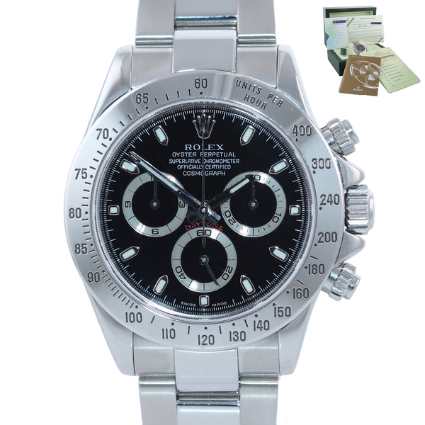 2005 PAPERS Rolex Daytona 116520 Black Dial Steel Chrono 40mm Watch RSC Service