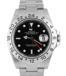 2005 Men's Rolex Explorer II SEL NO-HOLES Black Date Steel GMT 40mm Watch 16570