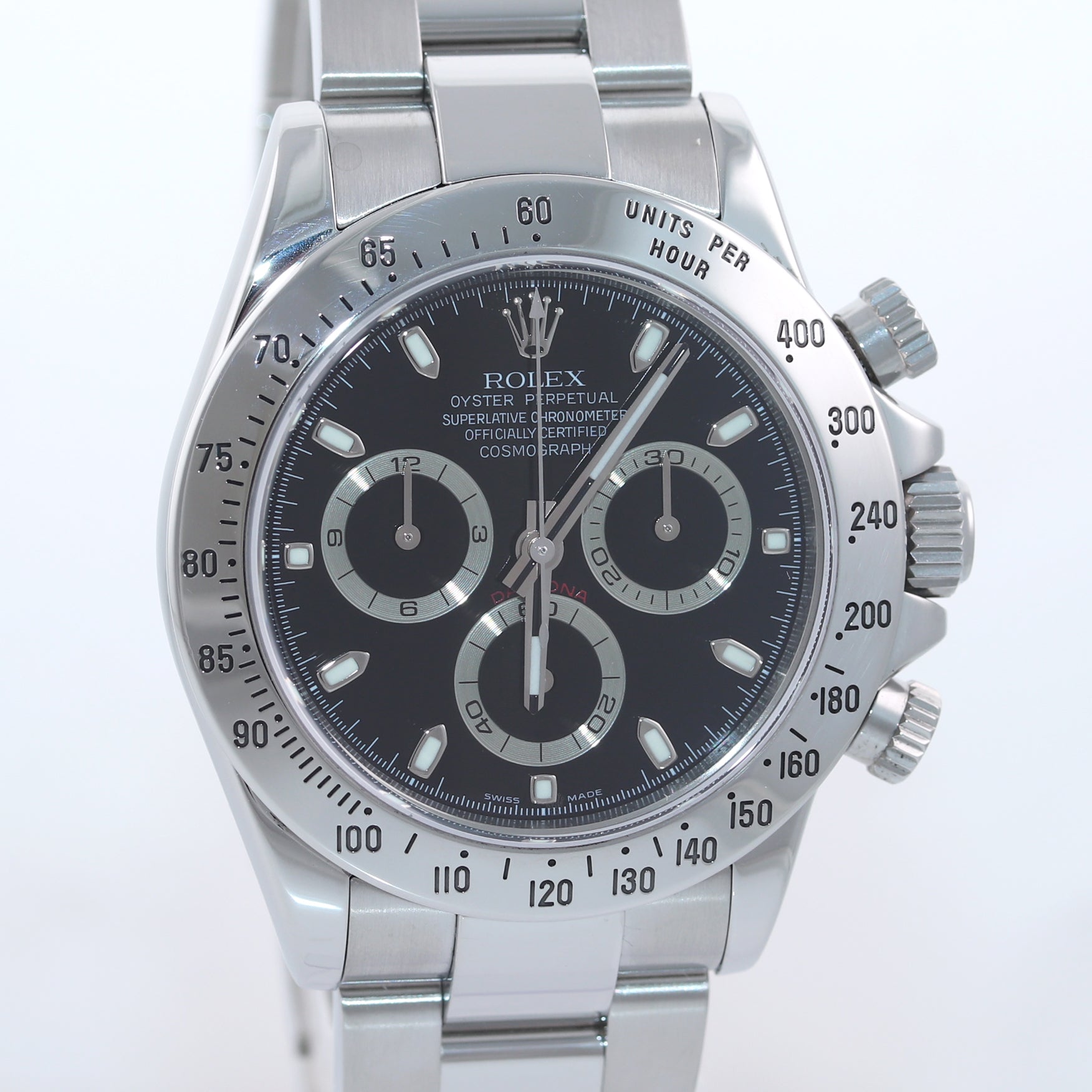 | Bezel | Original Rolex Fixed Stainless Steel Bezel with an engraved tachymetric scale |