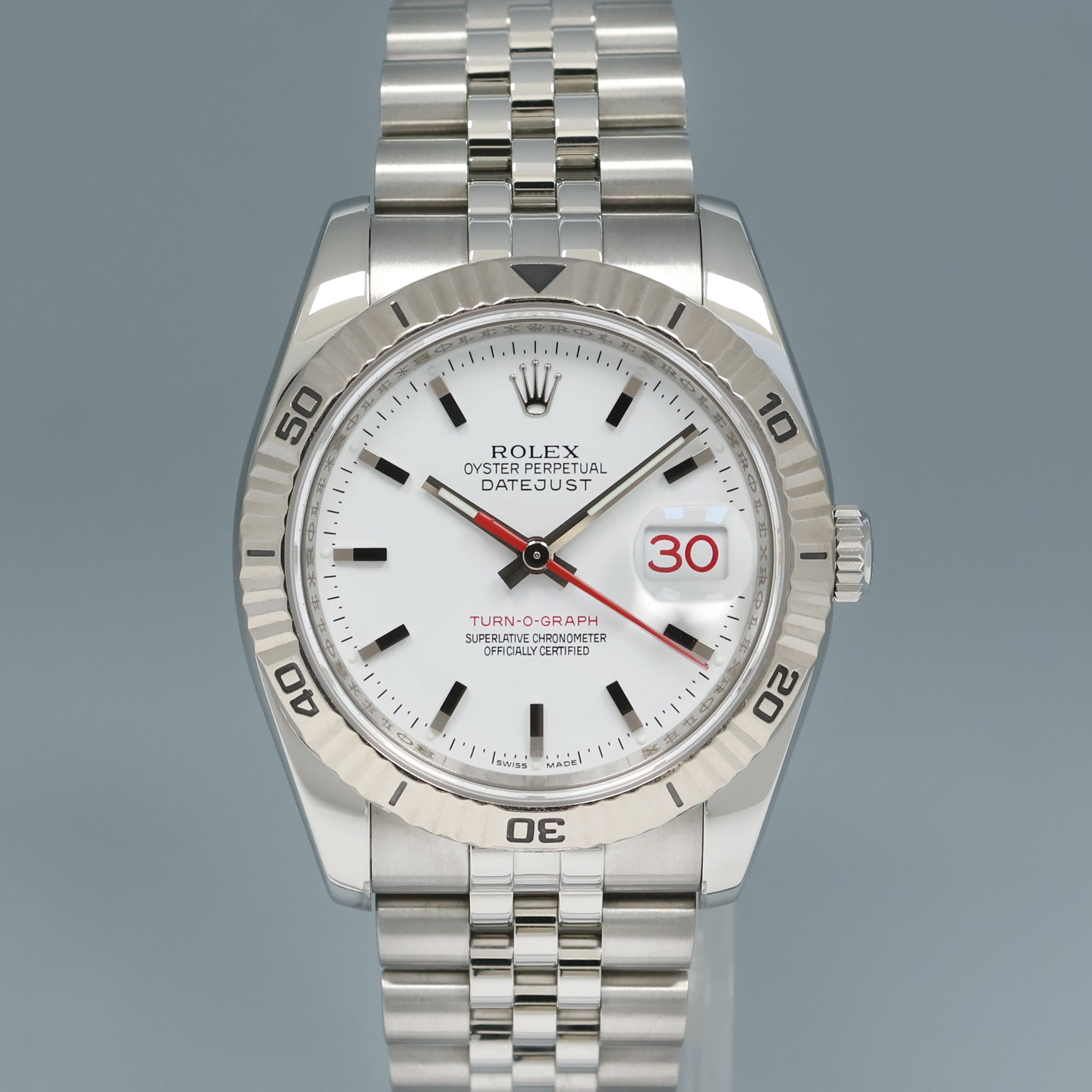 | Bezel | Rolex Bidirectional Rotatable White Gold 60-Minute Graduated Fluted Bezel |